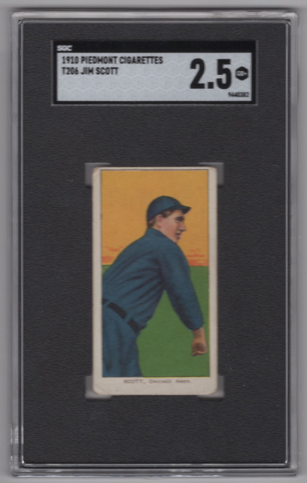 Rare 1909 Piedmont White Border Jim Scott baseball card graded SGC 2.5. A must-have collectible for Chicago baseball fans.