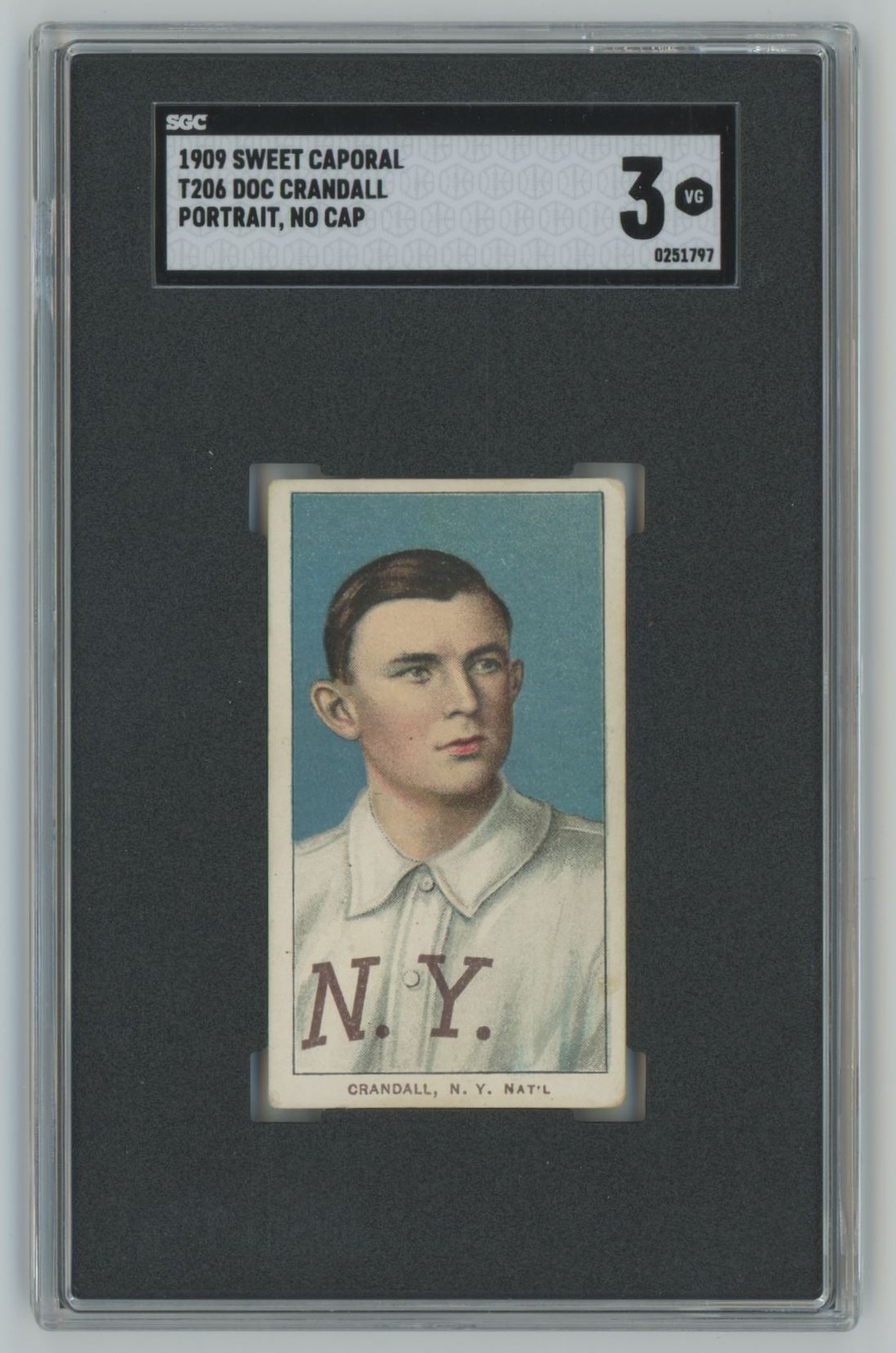 Rare 1909 Sweet Caporal White Border Doc Crandall SGC 3 from New York. Perfect for any baseball card collector. Authentic scans, not stock photos.