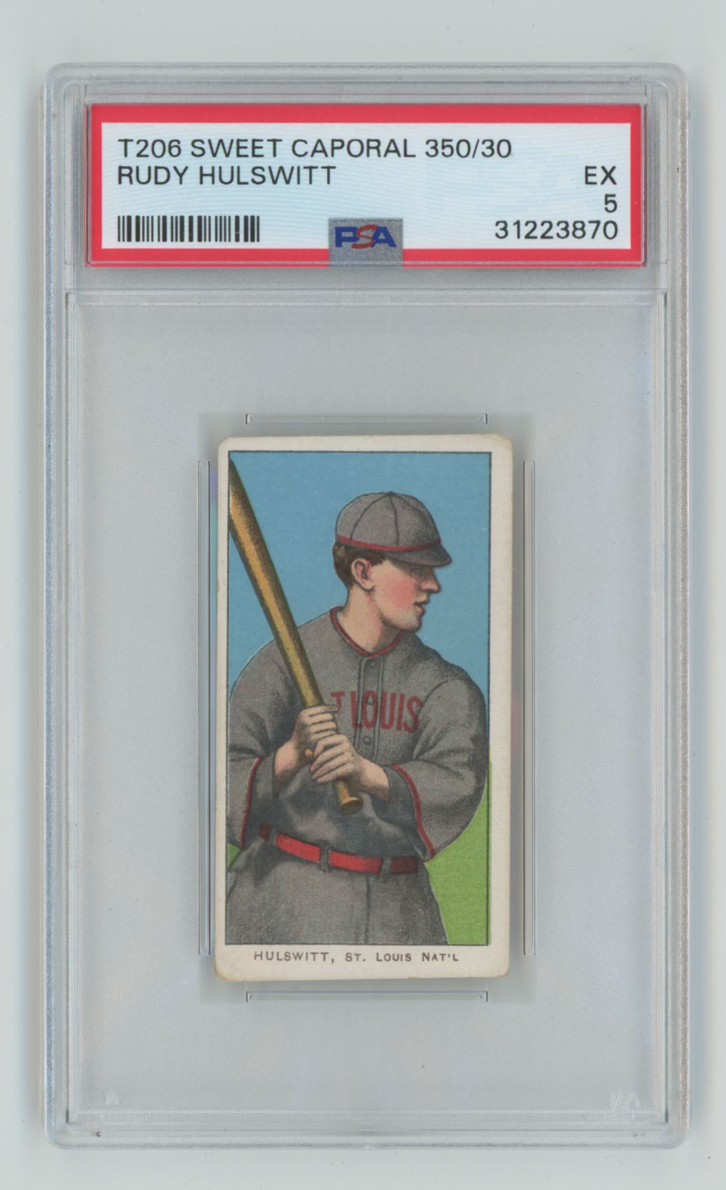| 1909 WHITE BORDER RUDY HULSWITT PSA 5 ST. LOUIS POP 6 ONLY 9 HIGHER |