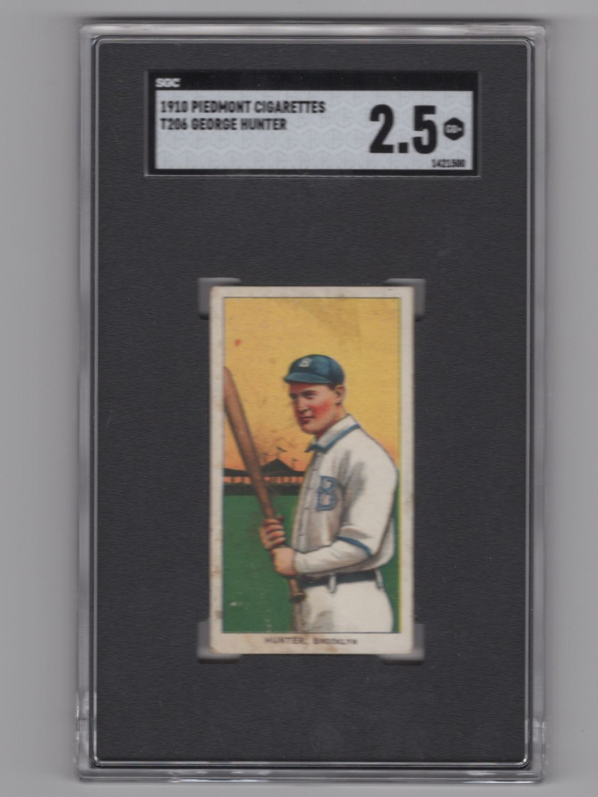 Rare 1910 George Hunter Piedmont White Border SGC 2.5 card featuring Brooklyn team. Limited edition collectible for baseball enthusiasts.