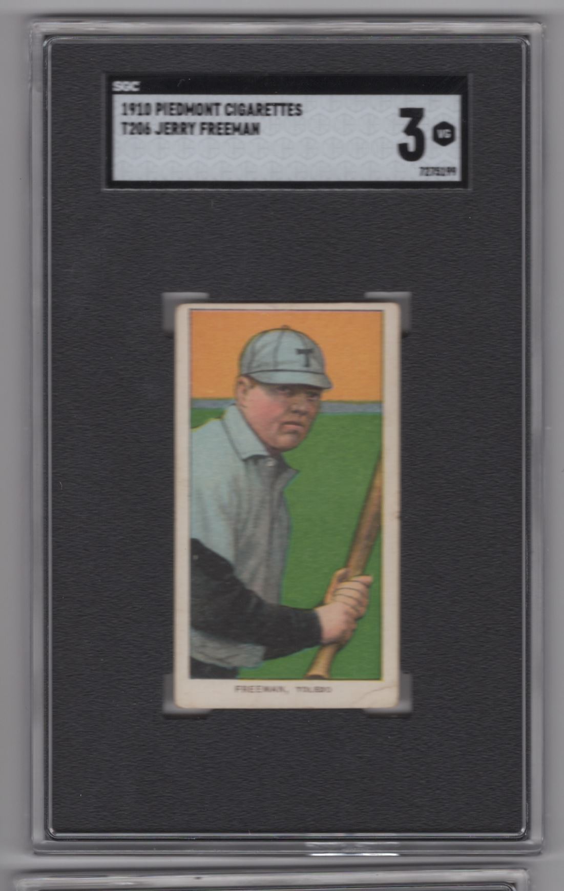 Rare 1910 Piedmont White Border Jerry Freeman SGC 3 Toledo baseball card. Authentic and unique addition to any collector’s lineup.