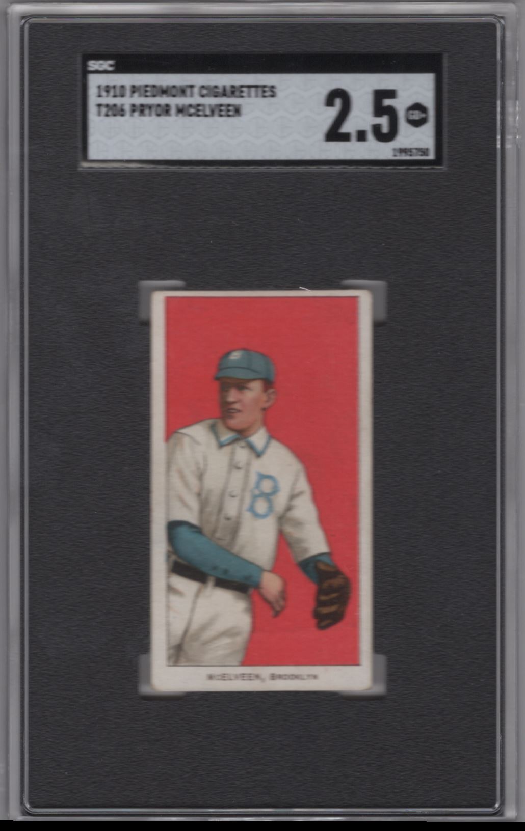 Rare 1910 Piedmont White Border Pryor McElveen SGC 2.5 Brooklyn baseball card. A must-have for any collector of vintage sports memorabilia.