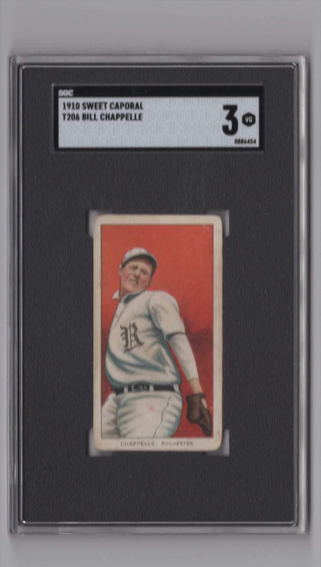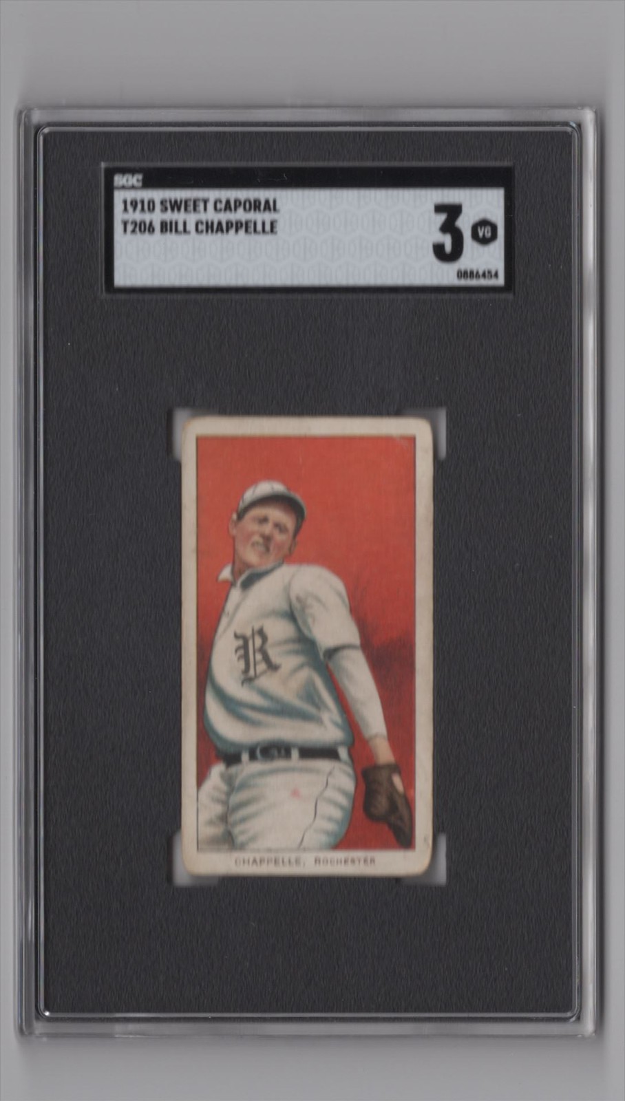| Description: | Bill Chappelle | | Category: | Baseball | | Year: | 1910 | | Product: | Sweet Caporl | | Set: | White Border 3-15 | | Team: | Rochester | | Card Number: | – | | Grade: | 3 SGC | | Dimensions: | 6¼" x 3½" | | SKU: | BL B0650 R01 A (8) |