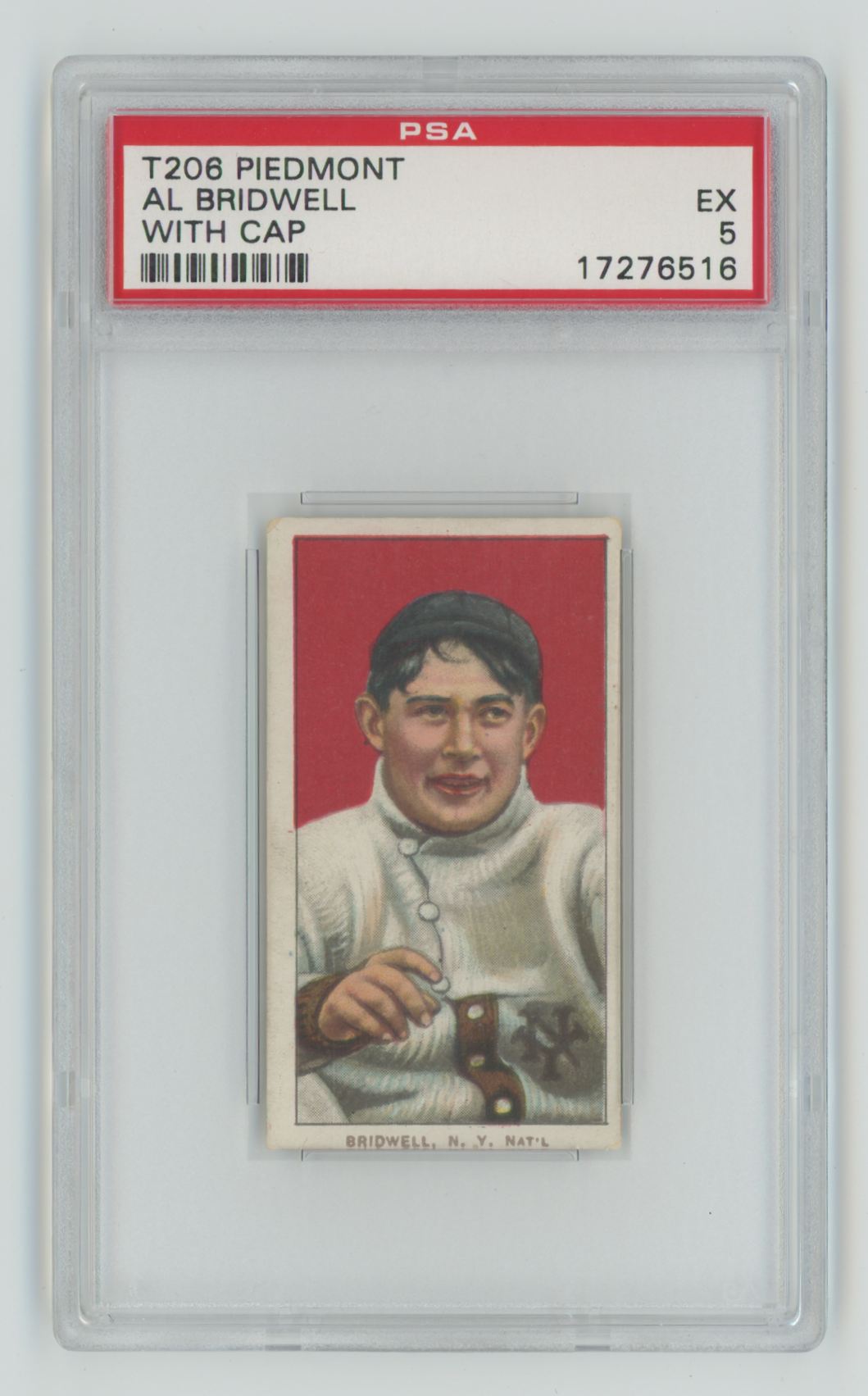 Rare 1910 Al Bridwell baseball card, PSA 5 grade, New York team, only 18 in existence, with cap. Don’t miss out on this highly collectible item!