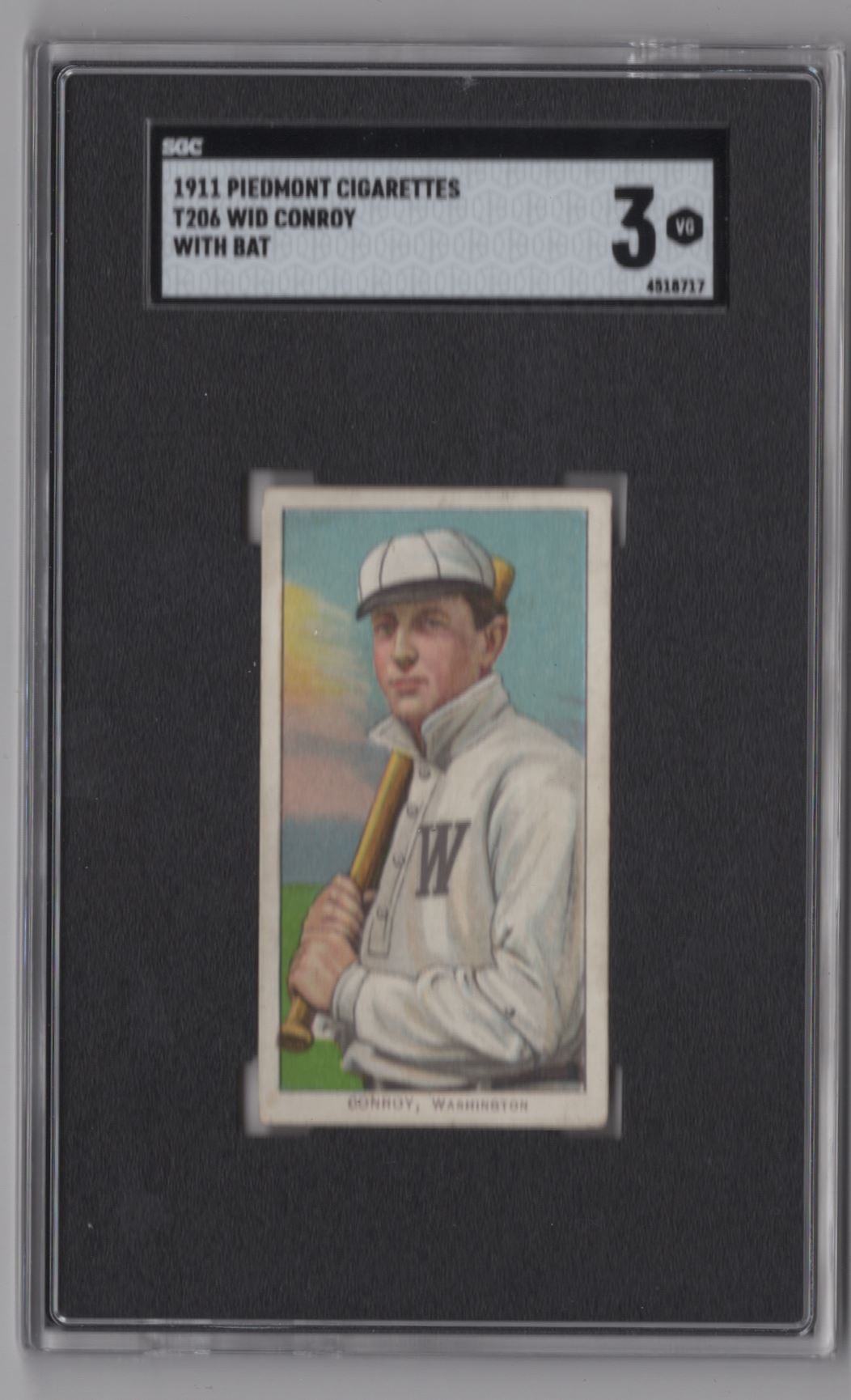 | Description: | Wid Conroy | | Category: | Baseball | | Year: | 1911 | | Product: | Piedmont | | Set: | White Border | | Team: | Washington | | Grade: | 3 SGC | | Dimensions: | 5½" x 3¼" | | SKU: | BL B0400 R02 A (12) |