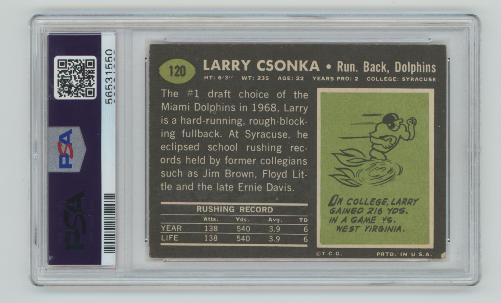 | 1969 TOPPS LARRY CSONKA ROOKIE PSA 4 MIAMI DOLPHINS #120 . | ||||||||||||||||||||||