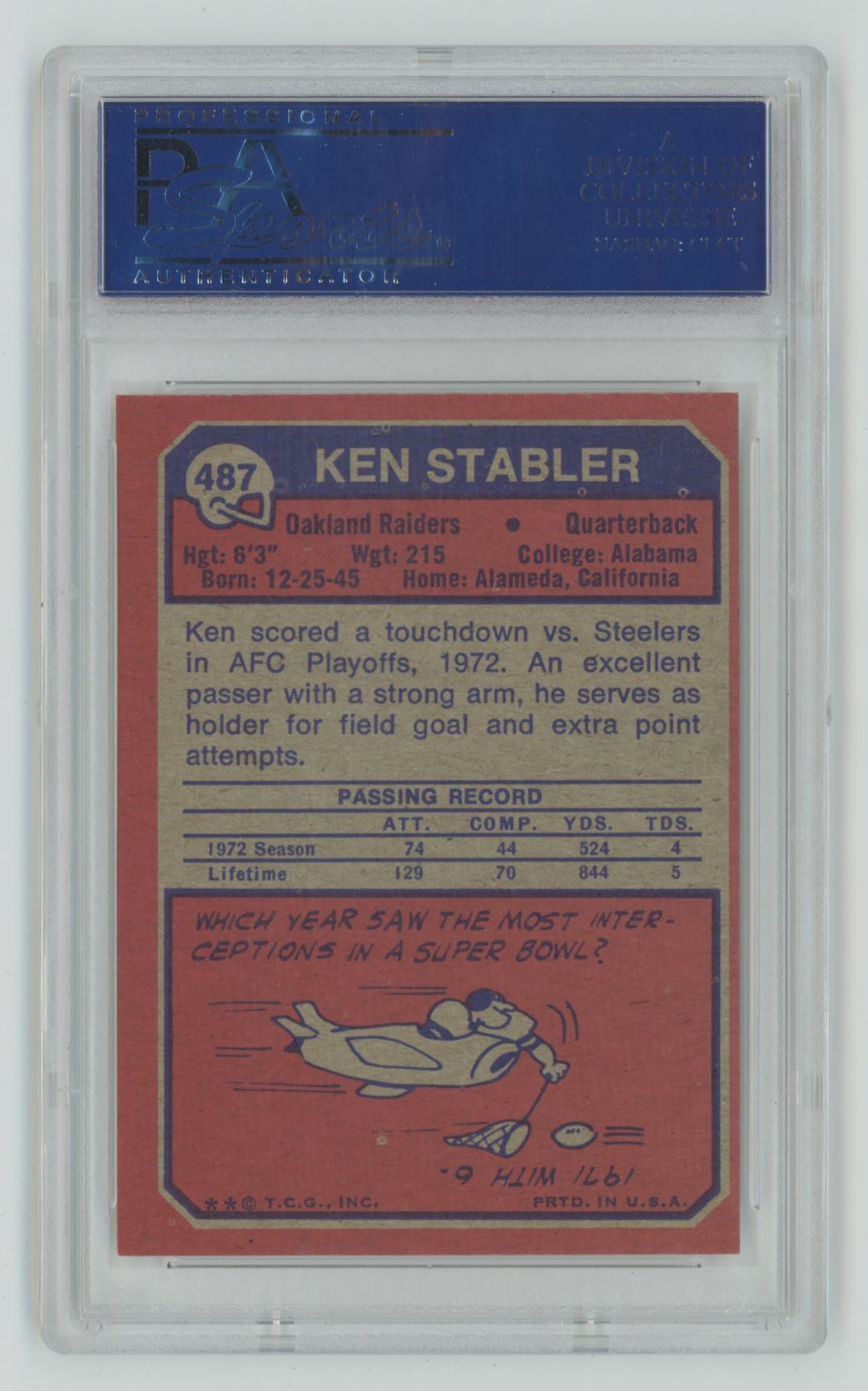 | 1973 TOPPS KEN STABLER ROOKIE PSA 7 OAKLAND RAIDERS #487 | ||||||||||||||||||||