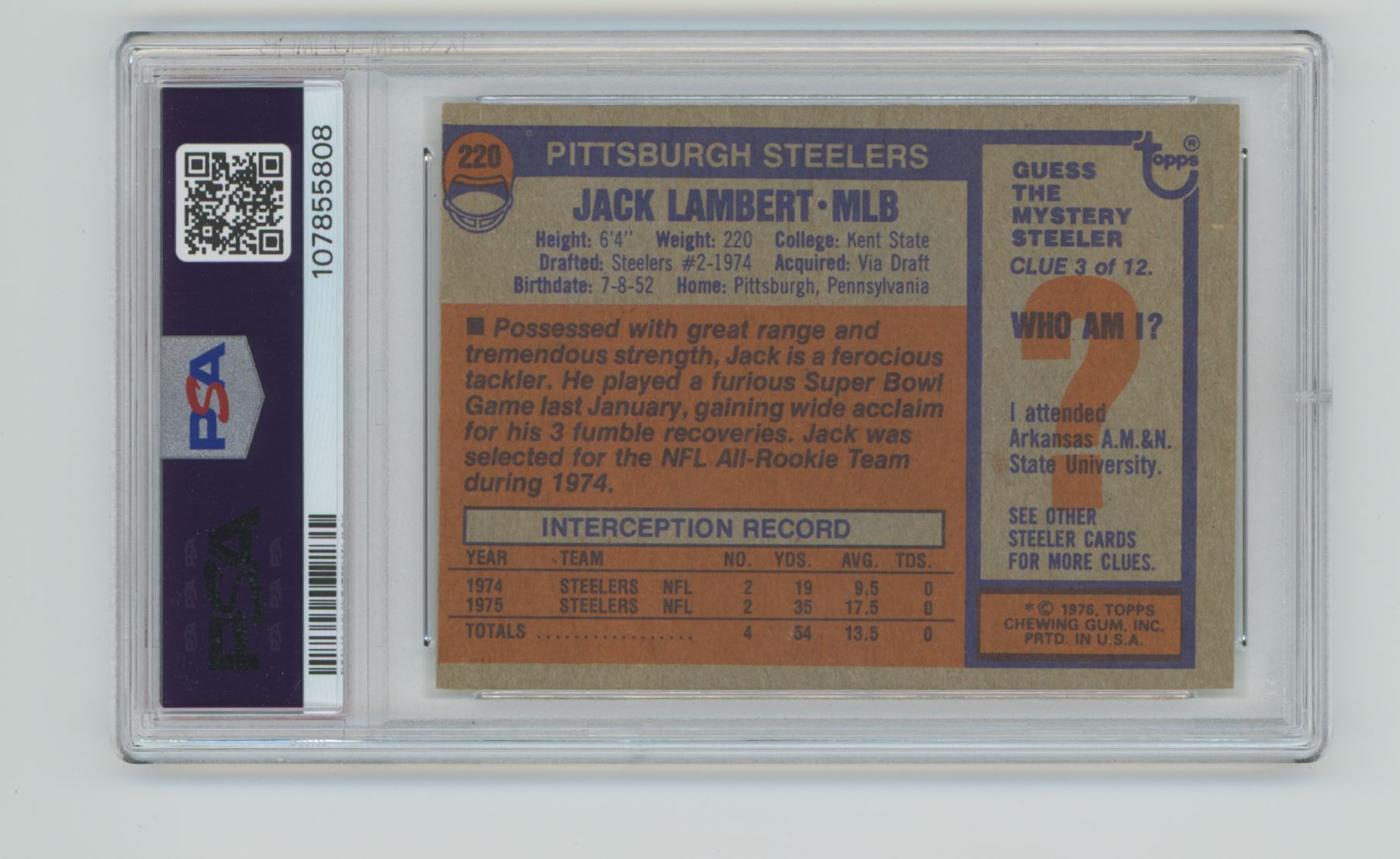 | 1976 TOPPS JACK LAMBERT ROOKIE PSA 6 PITTSBURGH STEELERS #220 | ||||||||||||||||||||
