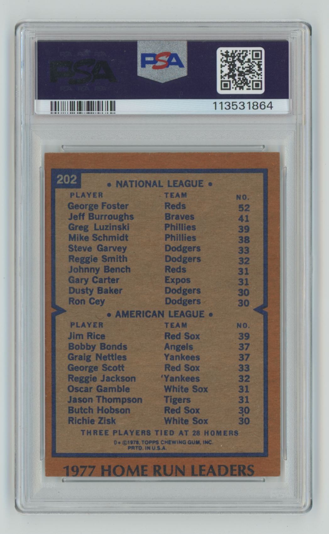 1978 TOPPS 1977 HOME RUN LEADERS – GEORGE FOSTER/JIM RICE AUTO PSA 6 CINCINNATI