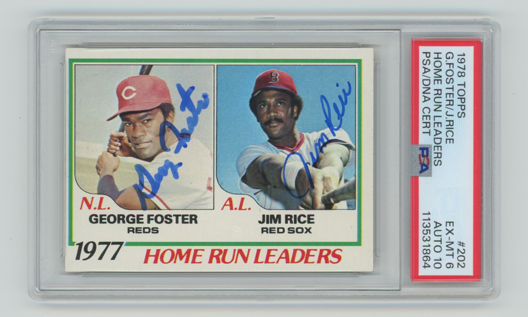 | 1978 TOPPS 1977 HOME RUN LEADERS – GEORGE FOSTER/JIM RICE AUTO PSA 6 CINCINNATI |