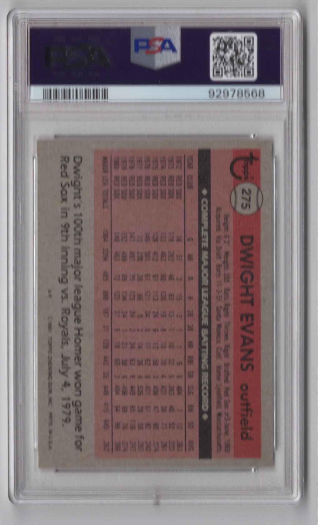 | 1981 TOPPS 3-15 DWIGHT EVANS PSA 9 BOSTON RED SOX #275 | ||||||||||||||||||||