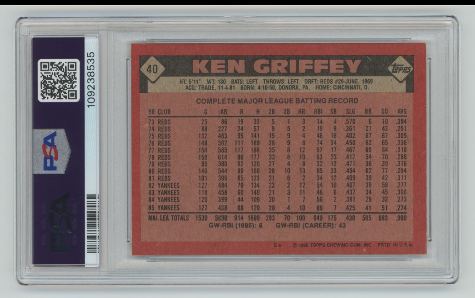 | 1986 TOPPS KEN GRIFFEY PSA 7 NEW YORK YANKEES #40 POP 7, TOTAL POP 51 |