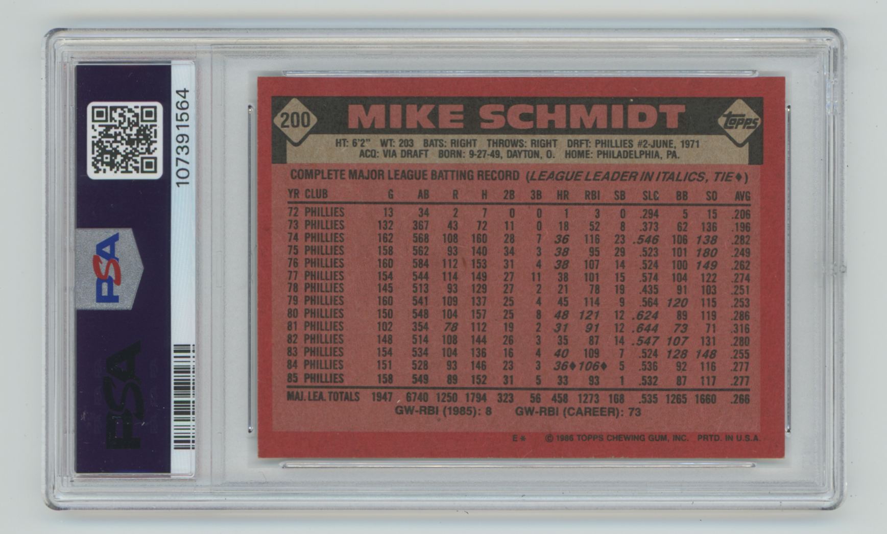 | 1986 TOPPS MIKE SCHMIDT PSA 8 PHILADELPHIA PHILLIES #200 |