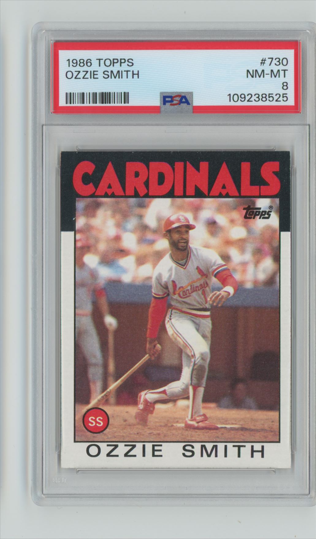 | 1986 TOPPS OZZIE SMITH PSA 8 ST. LOUIS CARDINALS #730 | ||||||||||||||||||