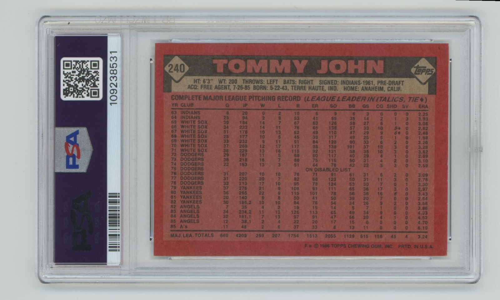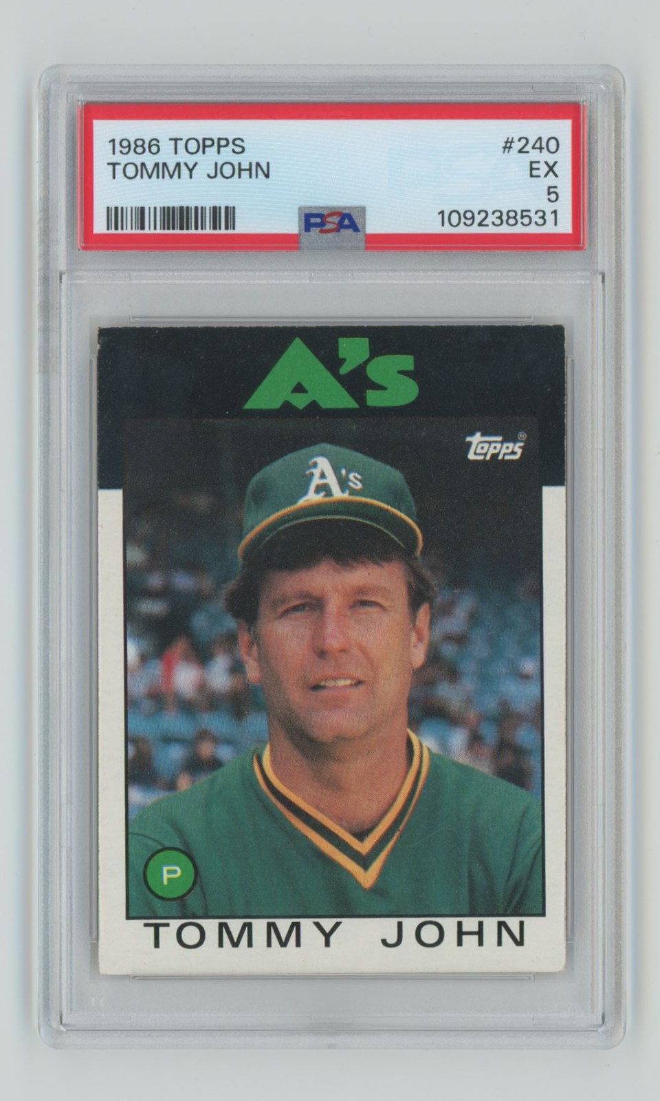 1986 TOPPS TOMMY JOHN PSA 5 OAKLAND ATHLETICS #240 POP 2, TOTAL POP 34