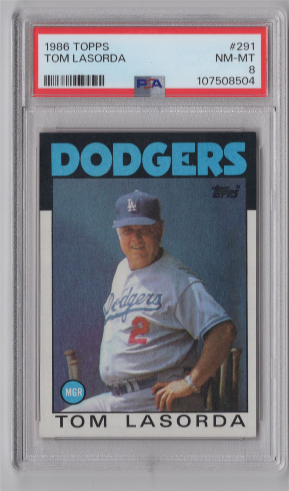 1986 TOPPS TOMMY LASORDA PSA 8 LOS ANGELES DODGERS #291 TOTAL POP ONLY 56