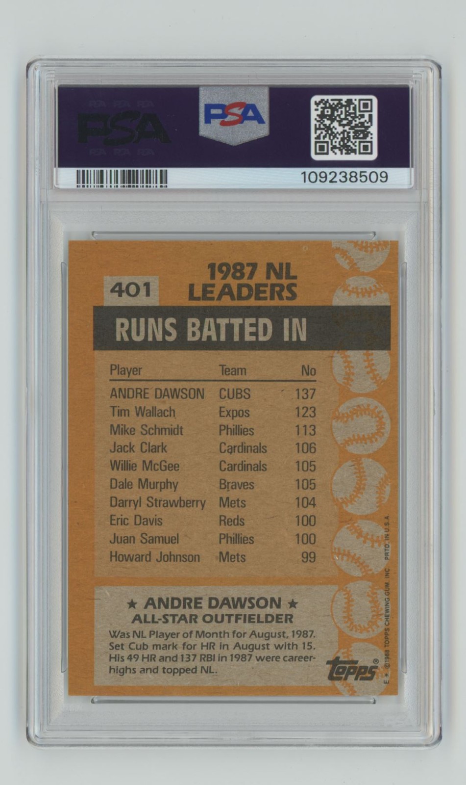 | 1988 TOPPS ANDRE DAWSON PSA 6 CHICAGO CUBS #401 POP 5, TOTAL POP 57 |