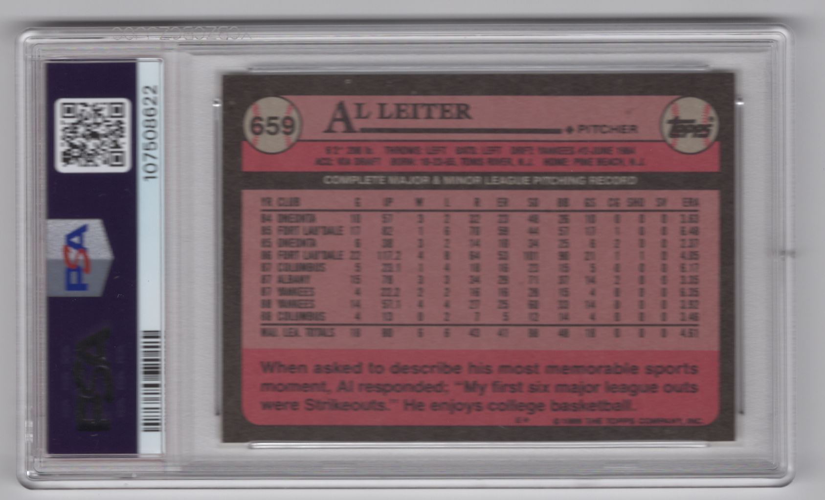 1989 TOPPS AL LEITER PSA 8 NEW YORK YANKEES #659 POP 3 ONLY 5 HIGHER