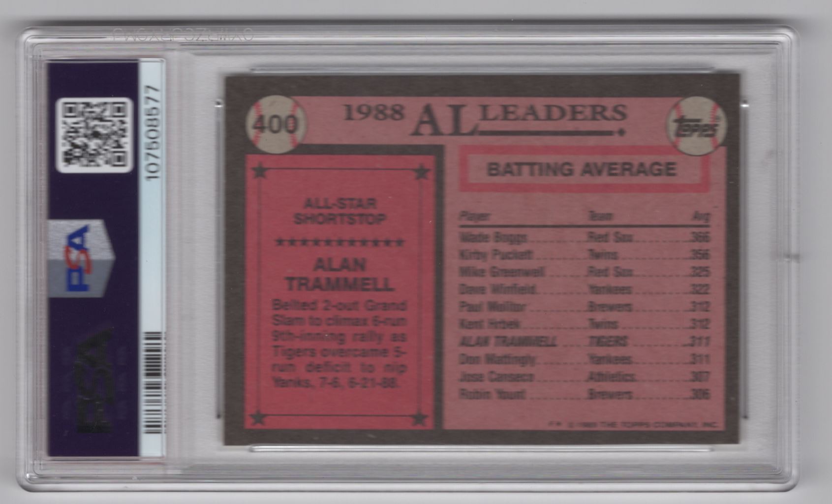| 1989 TOPPS ALAN TRAMMELL PSA 9 DETROIT TIGERS #400 POP 28 |