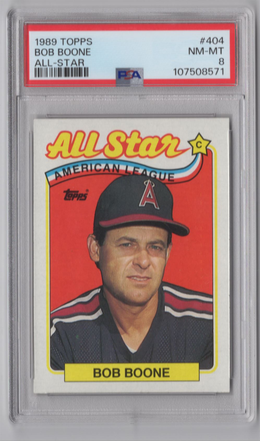 1989 TOPPS BOB BOONE PSA 8 CALIFORNIA ANGELS #404 POP 3 ONLY 9 HIGHER