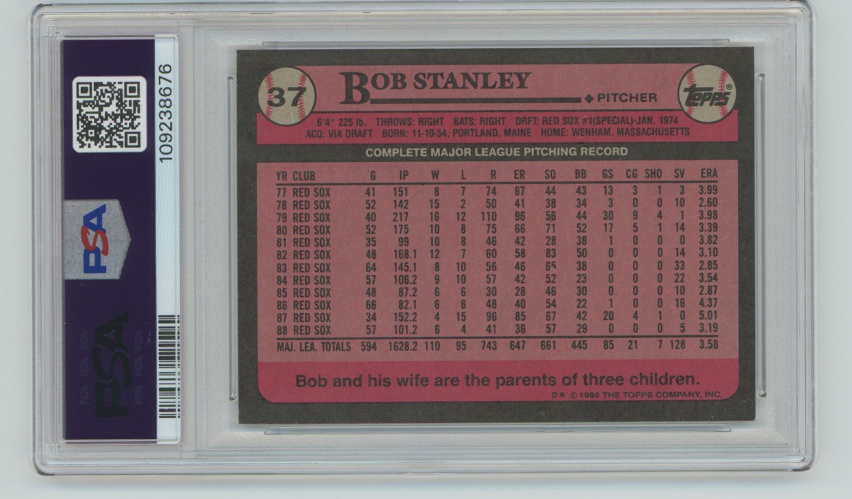 1989 TOPPS BOB STANLEY PSA 8 BOSTON RED SOX #37 POP 2 ONLY 8 HIGHER