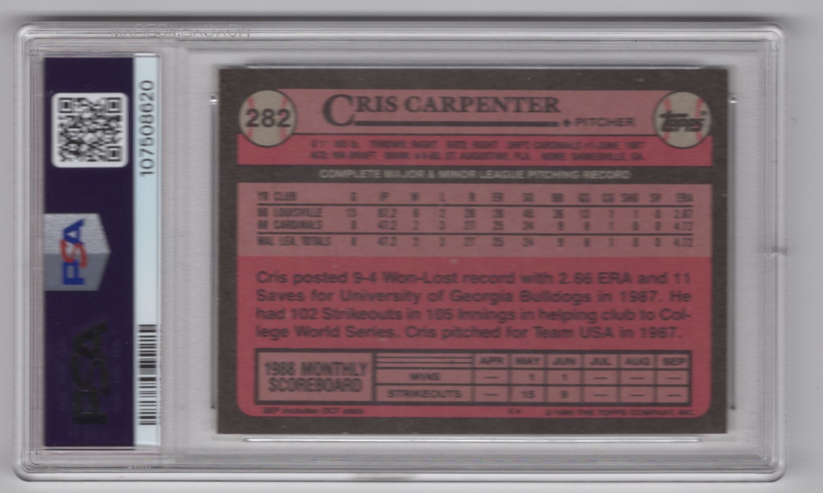 | 1989 TOPPS CRIS CARPENTER ROOKIE PSA 5 ST. LOUIS CARDINALS #282 ROOKIE CARD POP |