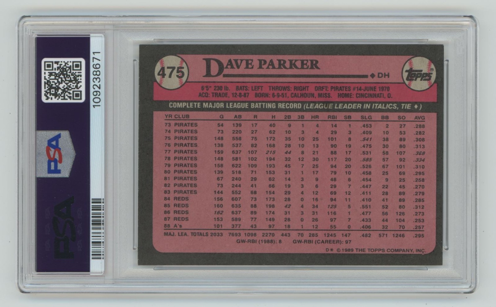 | 1989 TOPPS DAVE PARKER PSA 6 OAKLAND ATHLETICS #475 POP 1, TOTAL POP 48 |