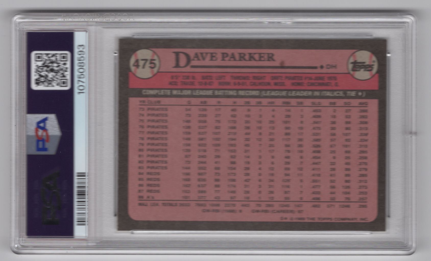 1989 TOPPS DAVE PARKER PSA 9 OAKLAND ATHLETICS #475 POP 8 ONLY 34 HIGHER