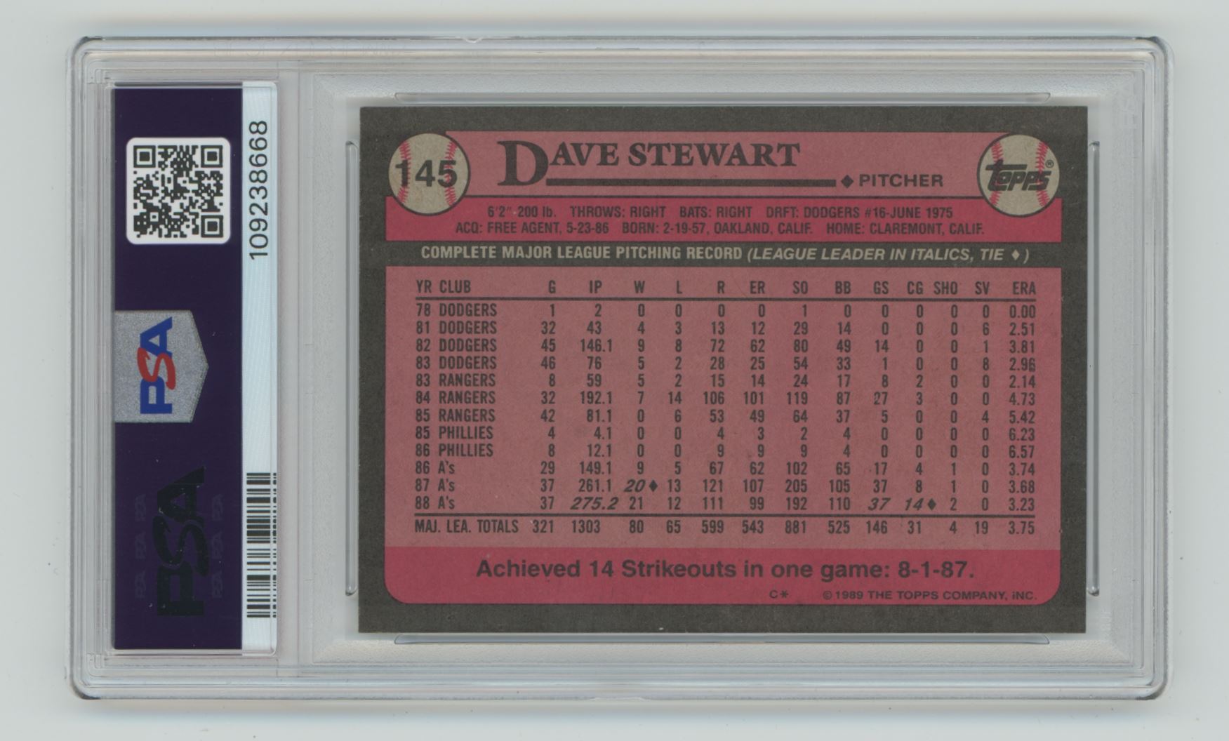 | 1989 TOPPS DAVE STEWART PSA 8 OAKLAND ATHLETICS #145 POP 6 ONLY 5 HIGHER |