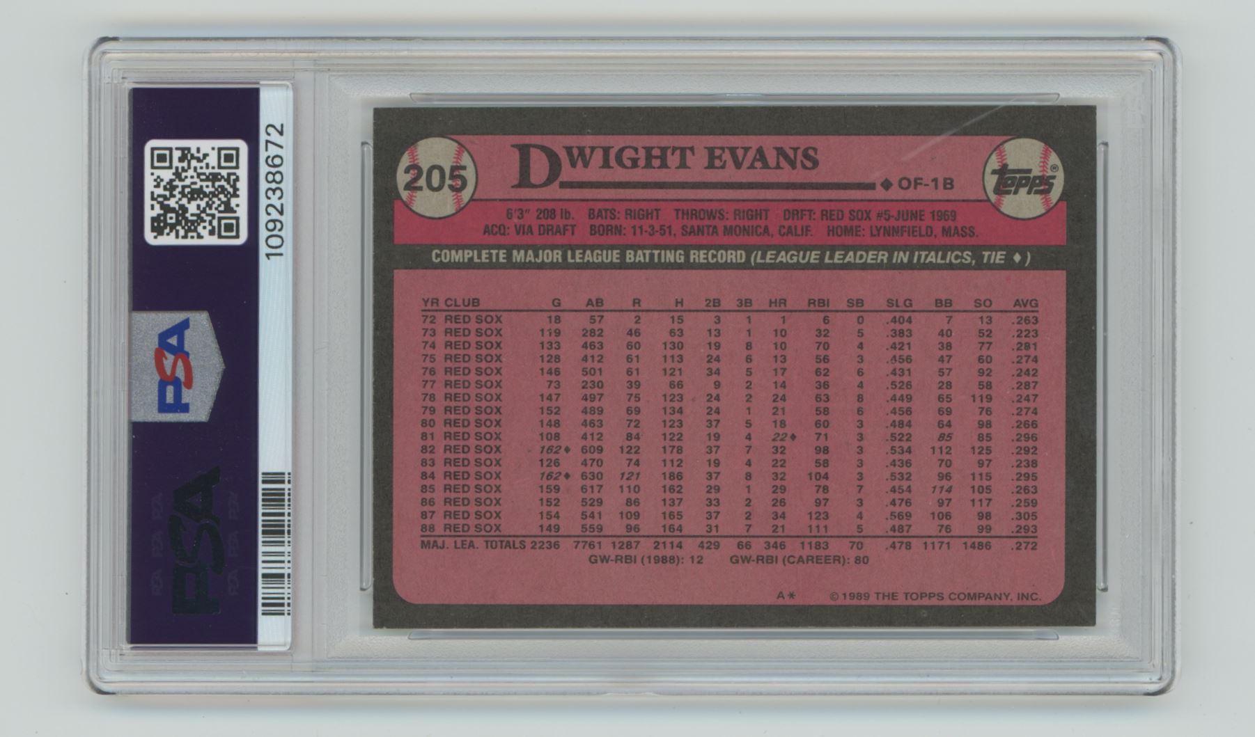 | 1989 TOPPS DWIGHT EVANS PSA 9 BOSTON RED SOX #205 POP 17, TOTAL POP 57 |