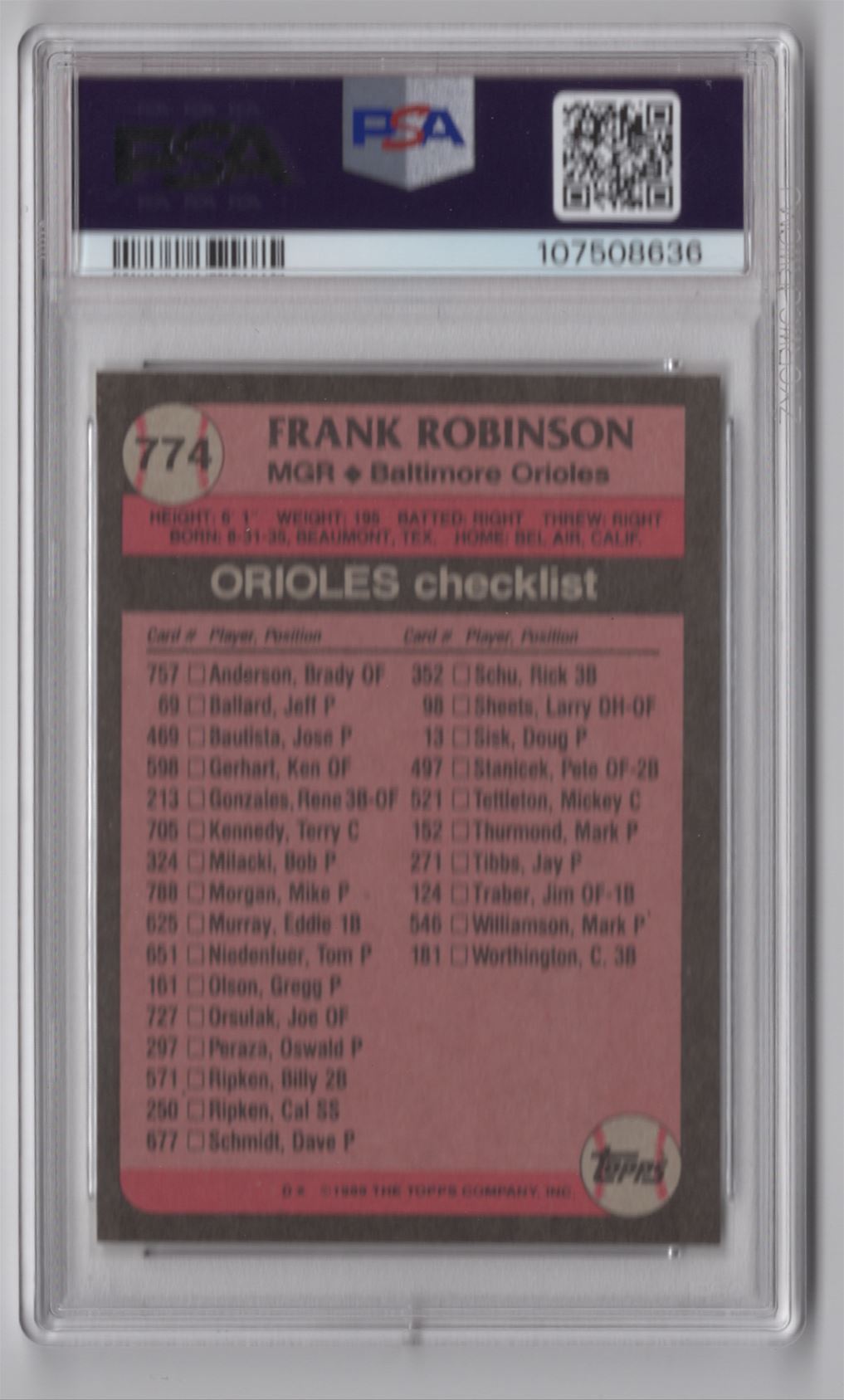 1989 TOPPS FRANK ROBINSON PSA 9 BALTIMORE ORIOLES #774 POP 27