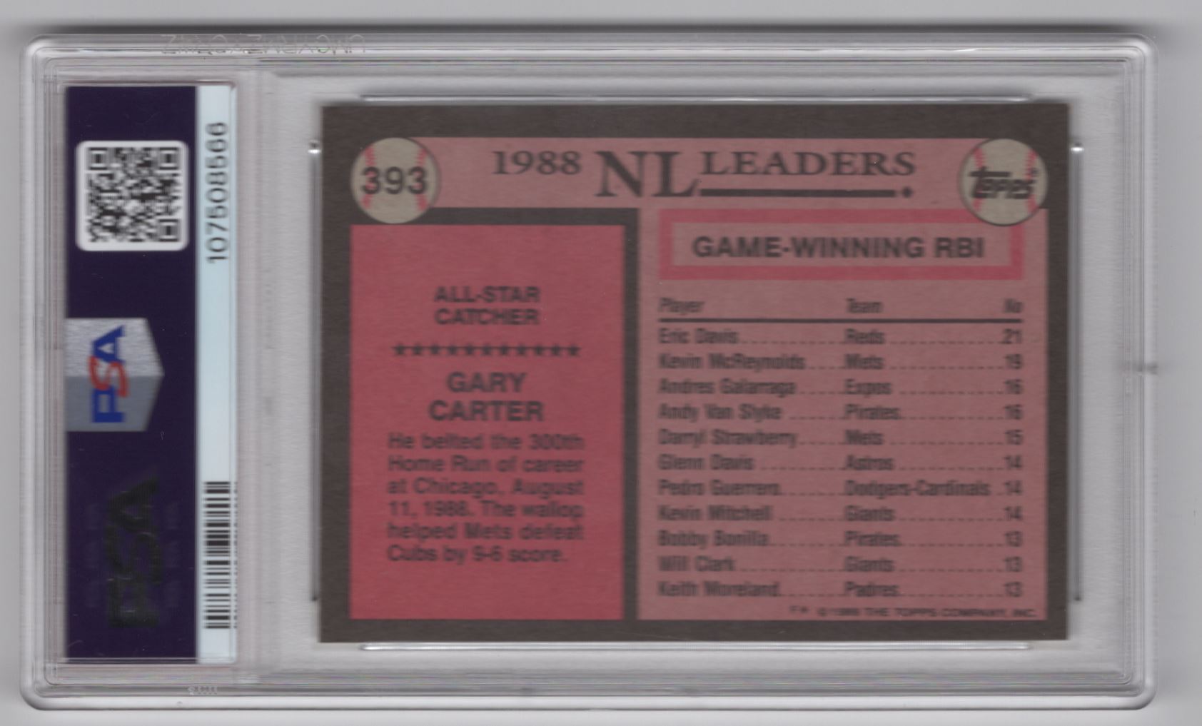 | 1989 TOPPS GARY CARTER PSA 9 NEW YORK METS #393 POP ONLY 29 |