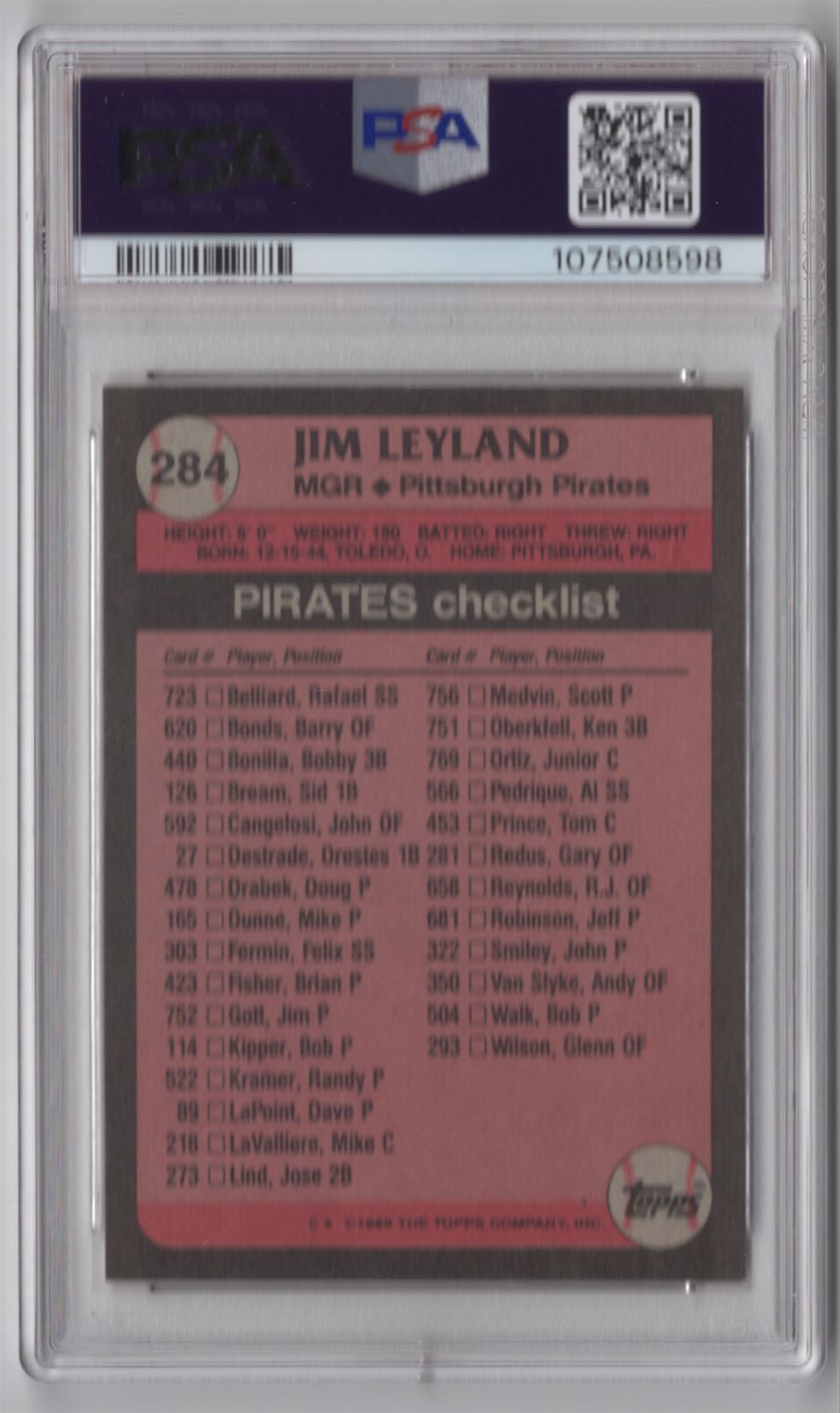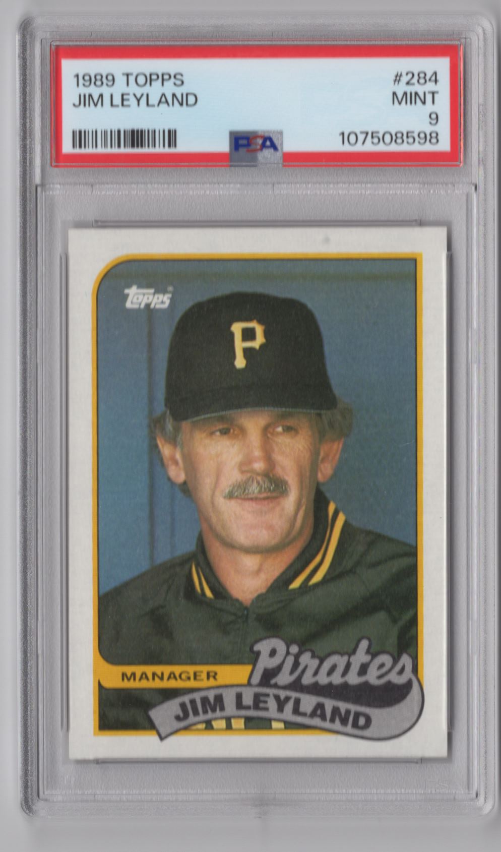 | 1989 TOPPS JIM LEYLAND PSA 9 PITTSBURGH PIRATES #284 POP 10 ONLY 5 HIGHER |
