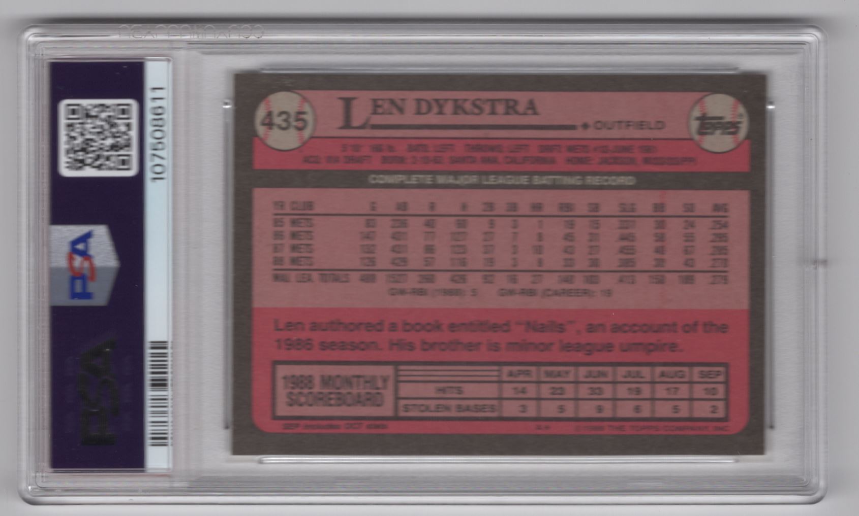 1989 TOPPS LEN DYKSTRA PSA 10 NEW YORK METS #435 PERFECT PSA GRADE 10 POP 8