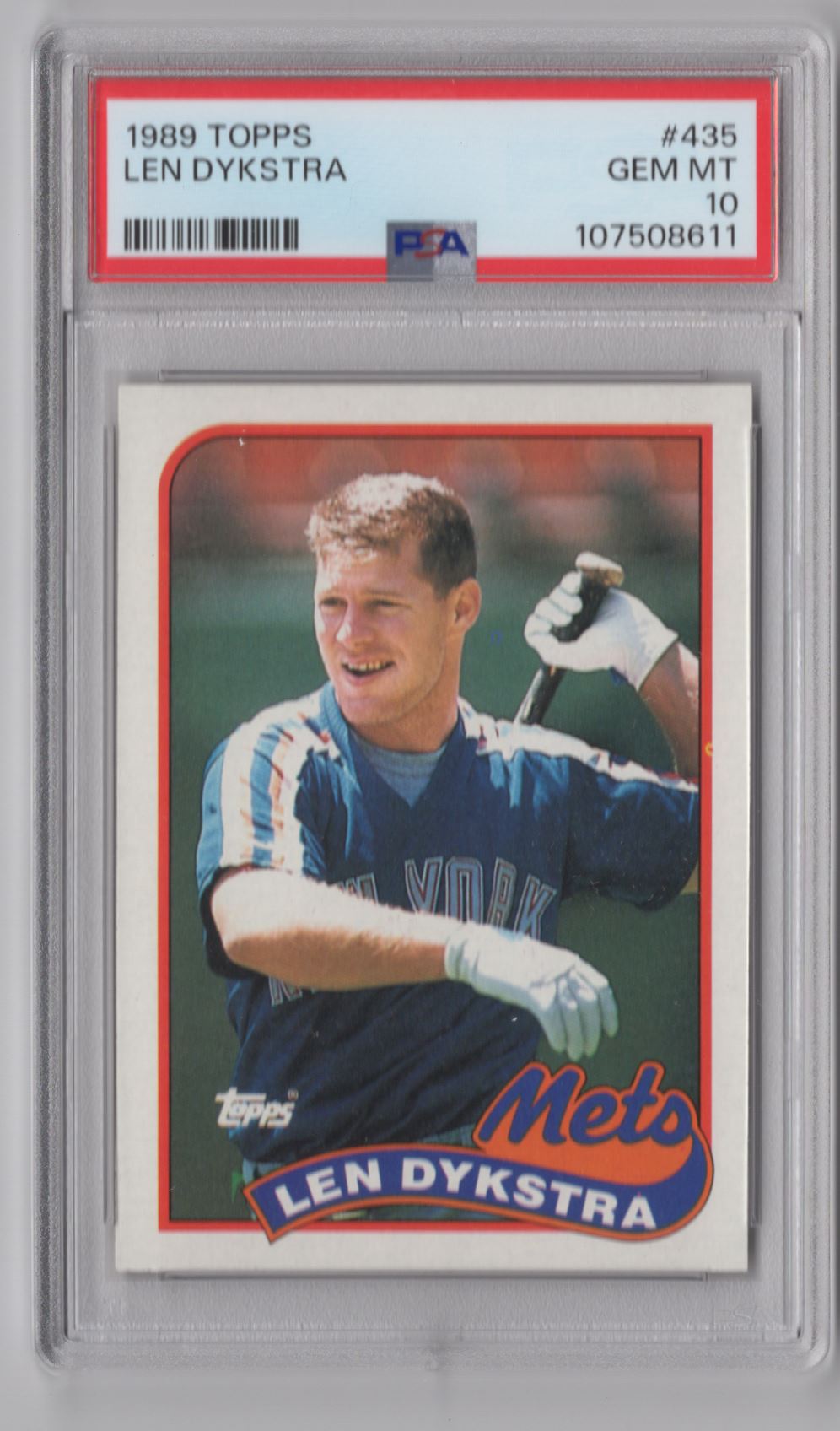 | 1989 TOPPS LEN DYKSTRA PSA 10 NEW YORK METS #435 PERFECT PSA GRADE 10 POP 8 |