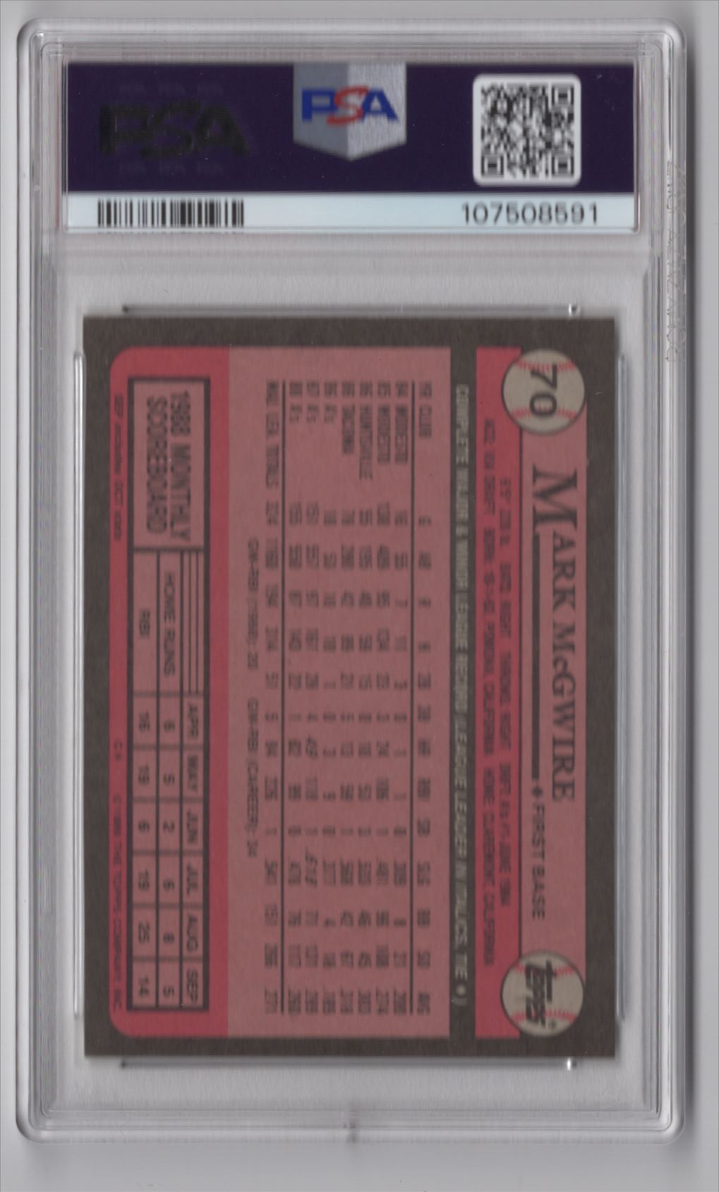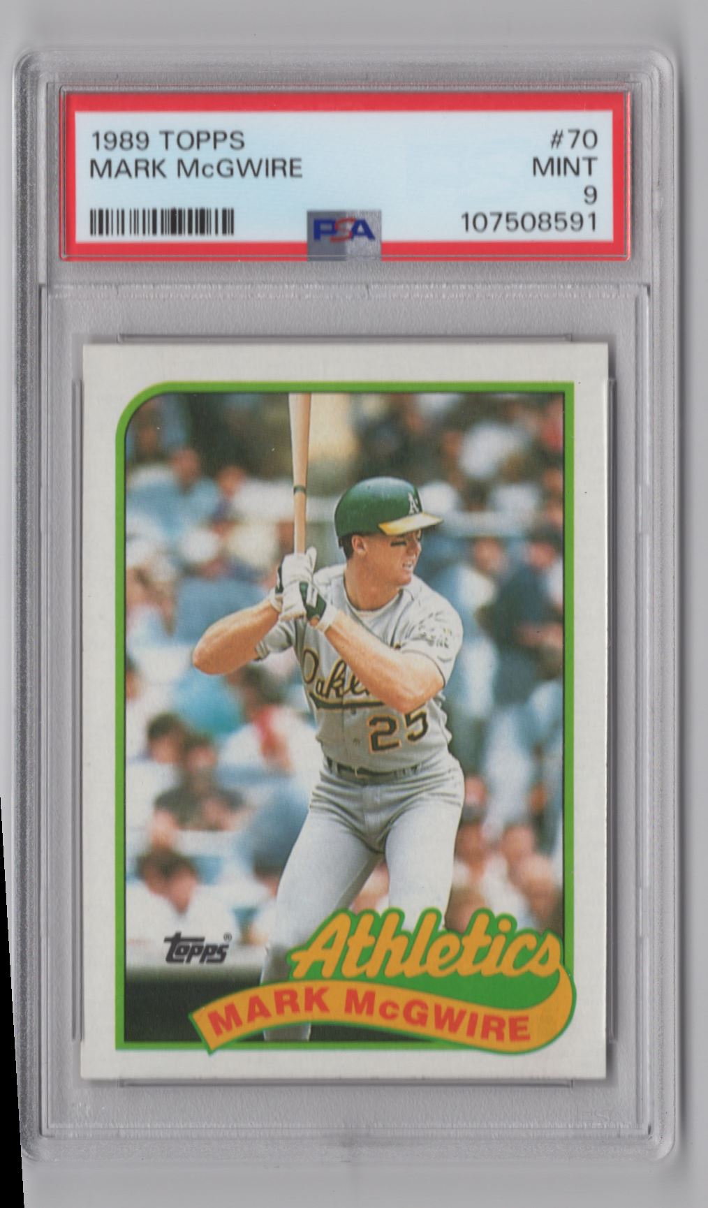 Own a piece of baseball history with this rare 1989 Topps Mark McGwire PSA 9 card featuring the Oakland Athletics. Perfect for any collector!
