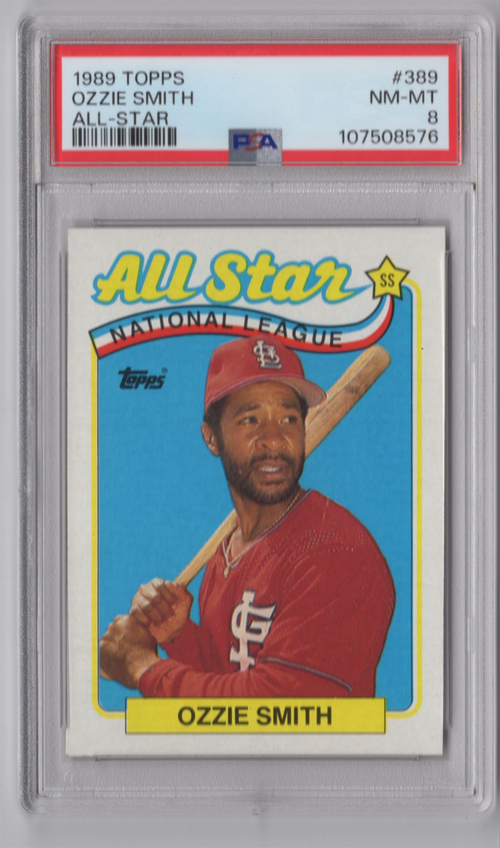 Own a piece of baseball history with this 1989 Topps Ozzie Smith PSA 8 card featuring the legendary St. Louis Cardinals player. #389.