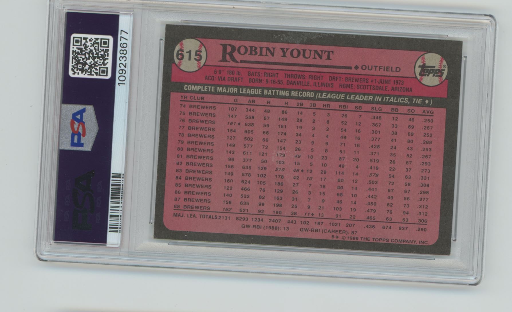 | 1989 TOPPS ROBIN YOUNT PSA 9 MILWAUKEE BREWERS #615 | ||||||||||||||||||