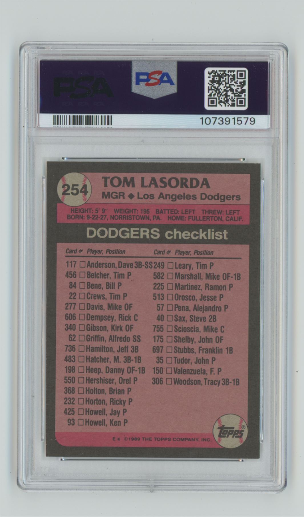 1989 TOPPS TOM LASORDA PSA 9 LOS ANGELES DODGERS #254 TOTAL POP 41