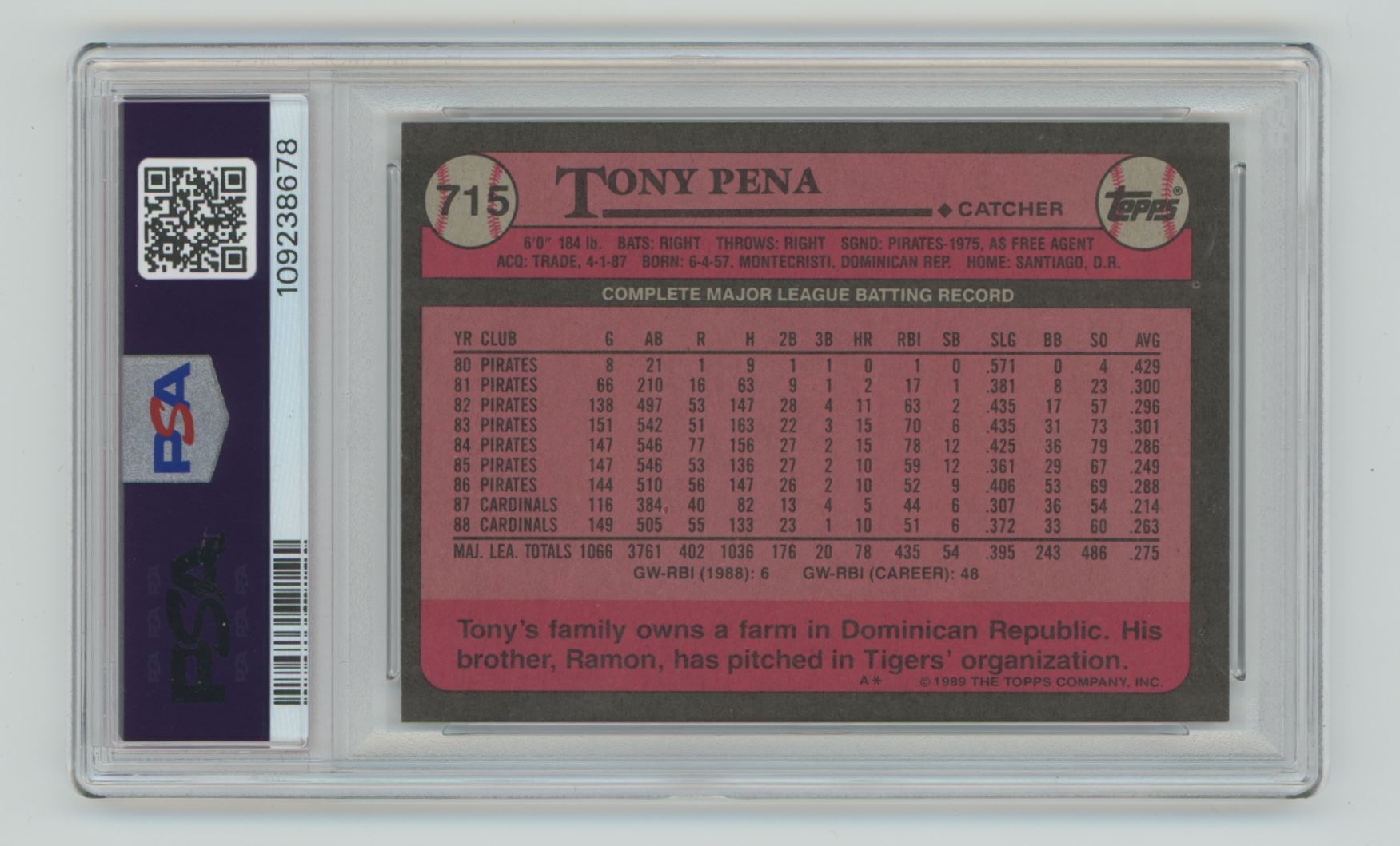 1989 TOPPS TONY PENA PSA 8 ST. LOUIS CARDINALS #715 POP 2 ONLY 3 HIGHER