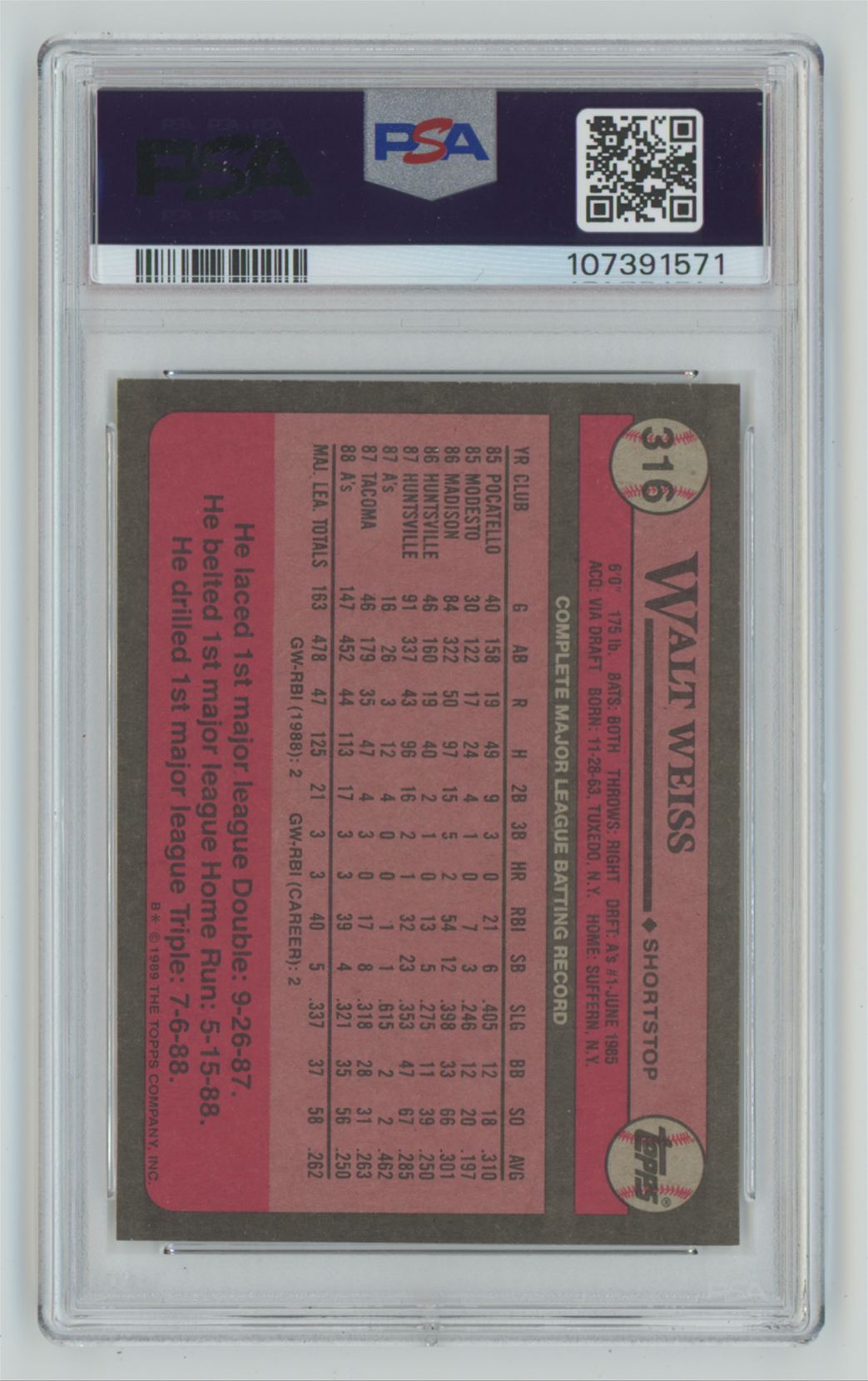 | 1989 TOPPS WALT WEISS PSA 9 OAKLAND ATHLETICS #316 |