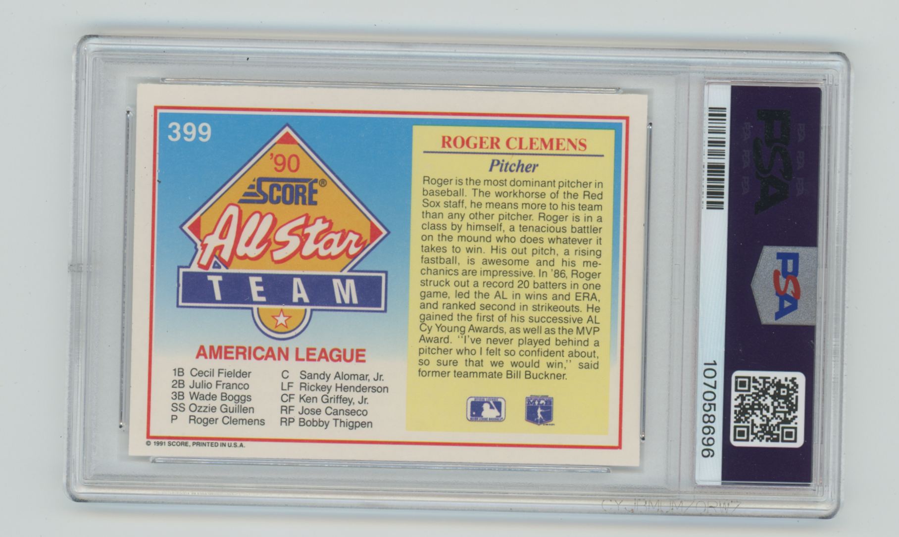 | 1991 SCORE ROGER CLEMENS PSA 8 BOSTON RED SOX #399 TOTAL POP 86 |
