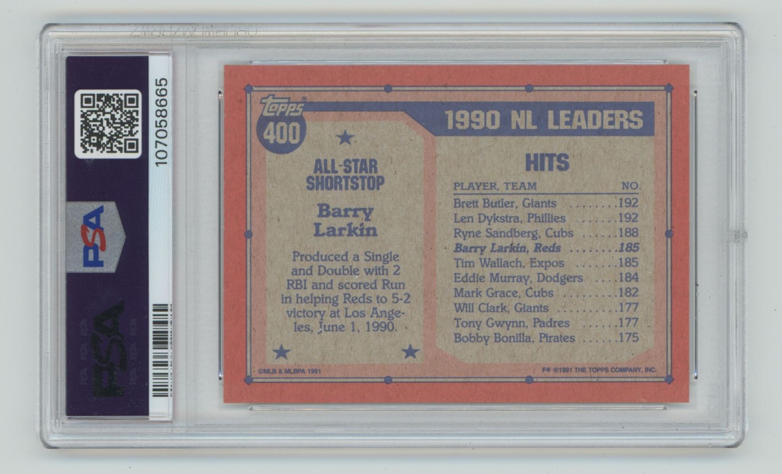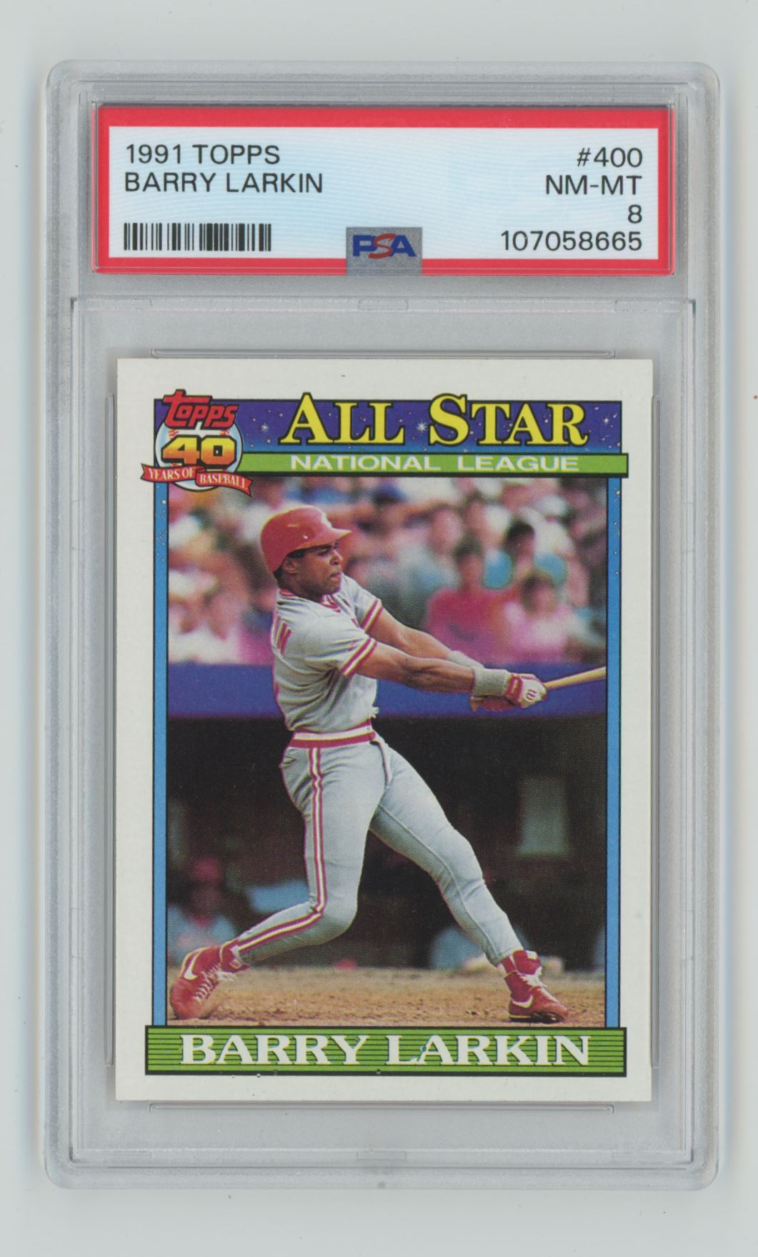 | 1991 TOPPS BARRY LARKIN PSA 8 CINCINNATI REDS #400 TOTAL POP 55 |