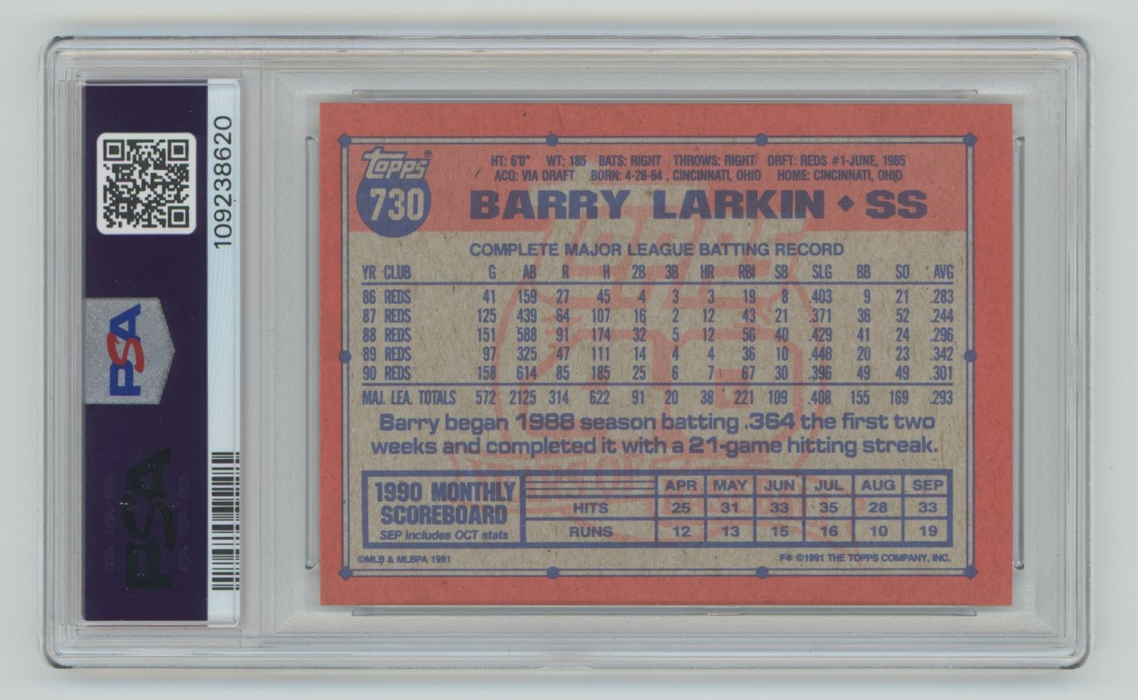 1991 TOPPS BARRY LARKIN PSA 9 CINCINNATI REDS #730 POP 18, TOTAL POP 63