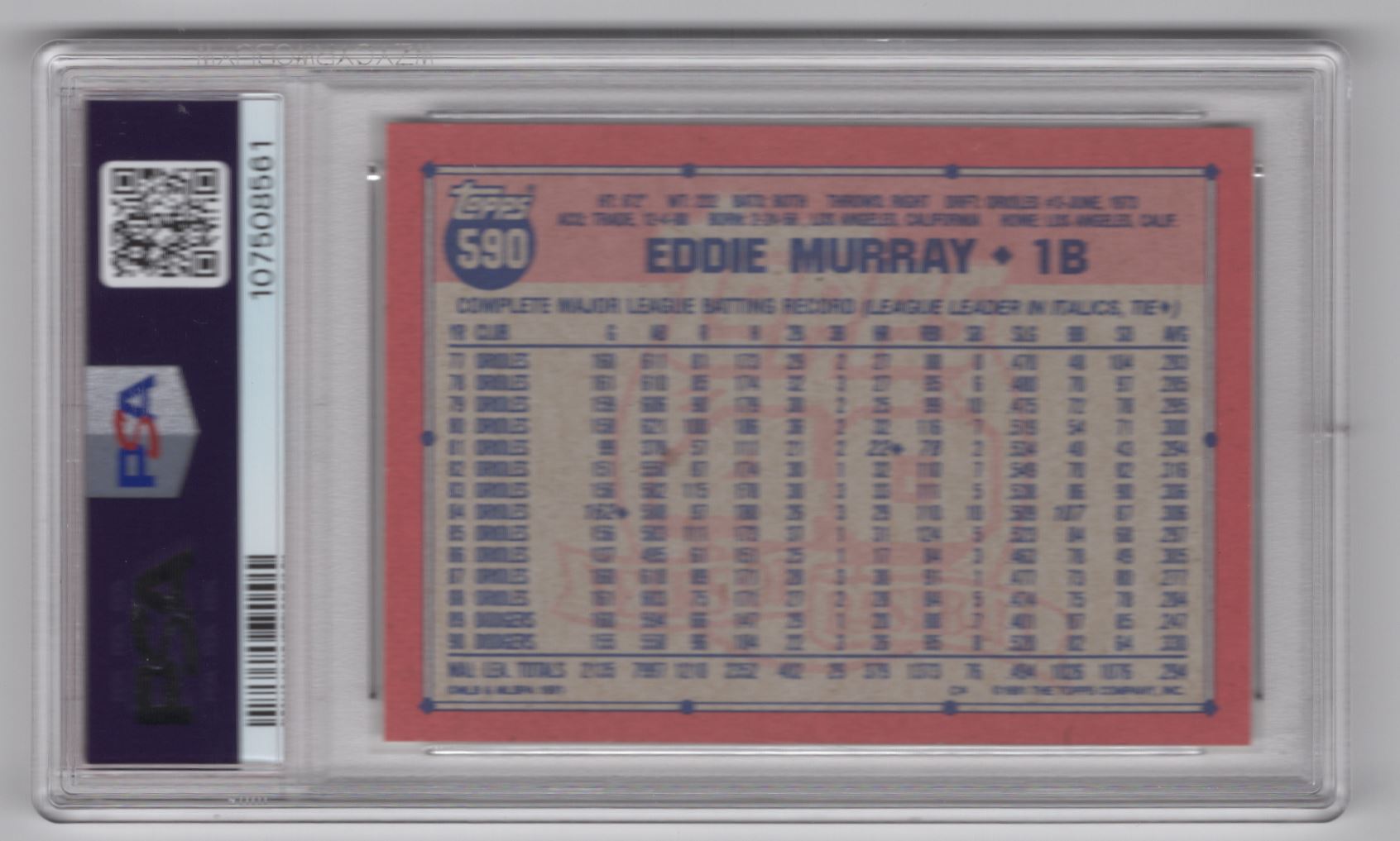 | 1991 TOPPS EDDIE MURRAY PSA 9 LOS ANGELES DODGERS #590 POP ONLY 19 |