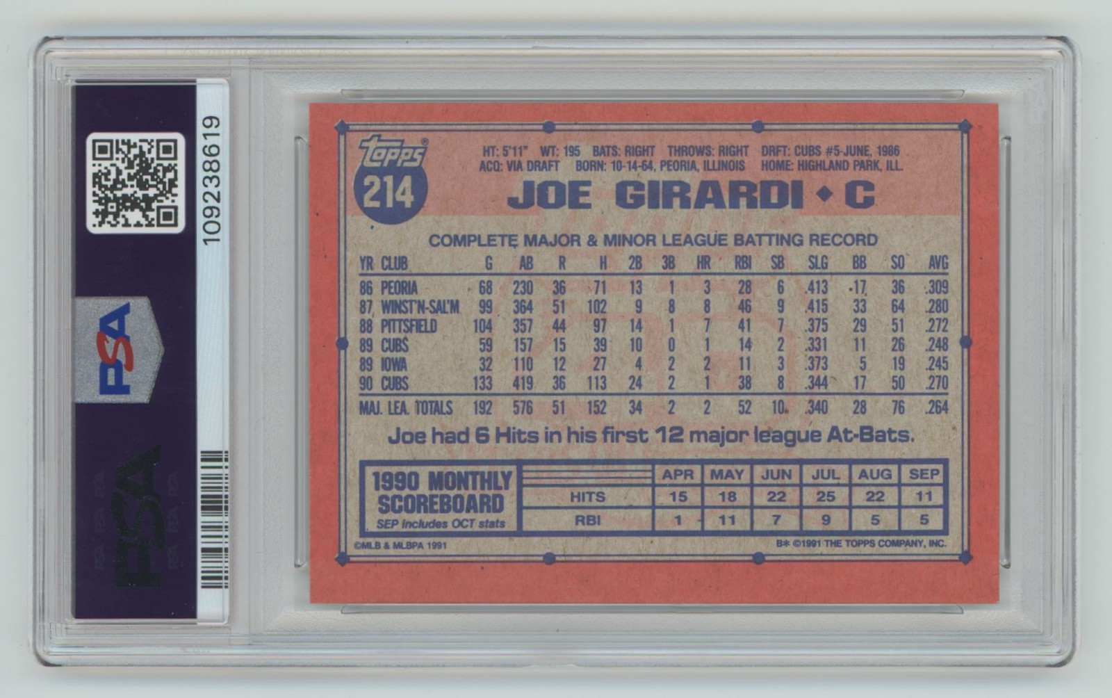 | 1991 TOPPS JOE GIRARDI PSA 7 CHICAGO CUBS #214 POP 2 ONLY 6 HIGHER |