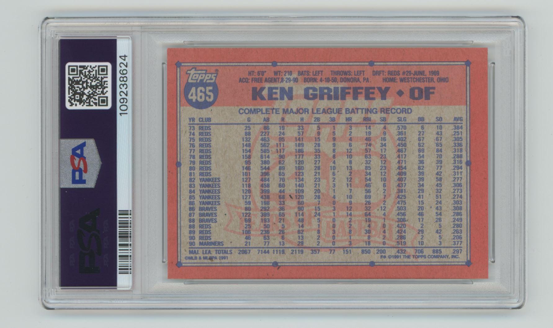 1991 TOPPS KEN GRIFFEY SR. PERFECT PSA 10 PSA 10 SEATTLE MARINERS #465 TOTAL POP