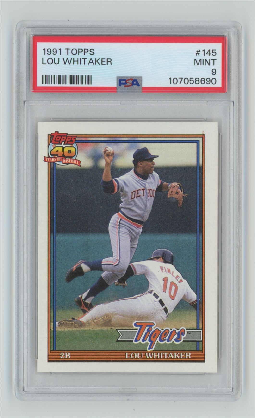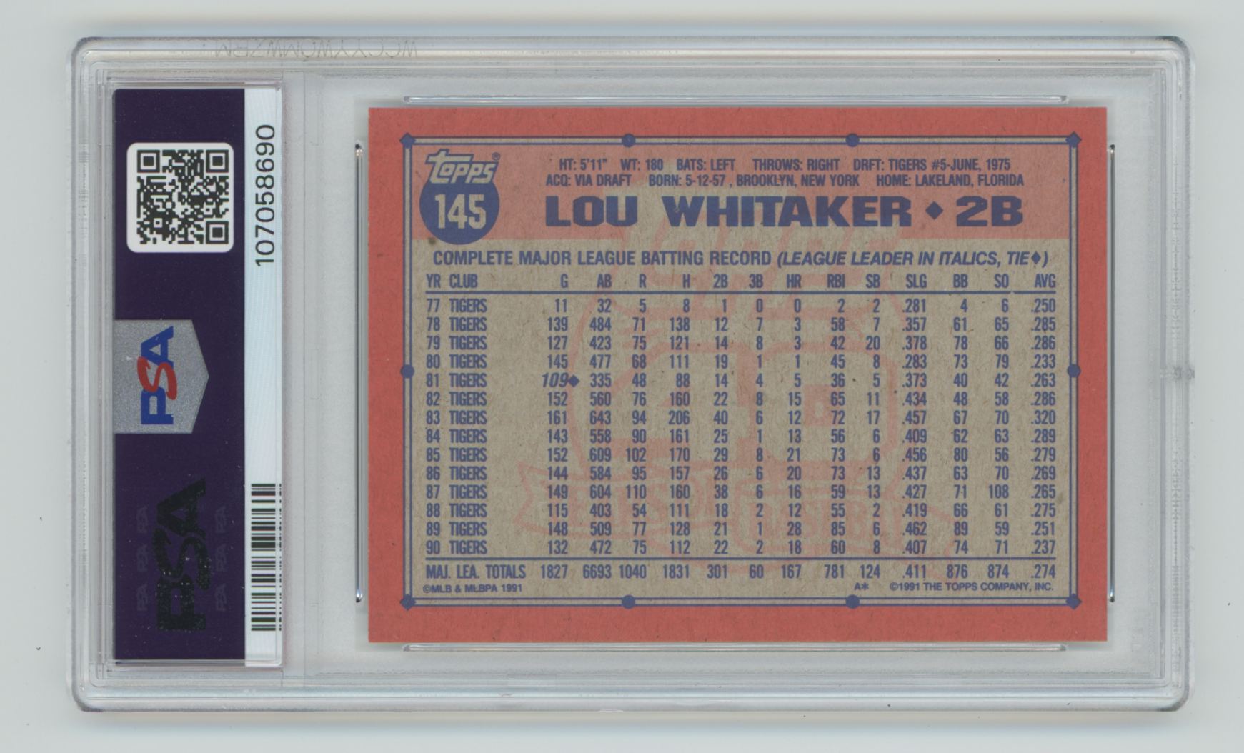 | 1991 TOPPS LOU WHITAKER PSA 9 DETROIT TIGERS #145 TOTAL POP 51 |