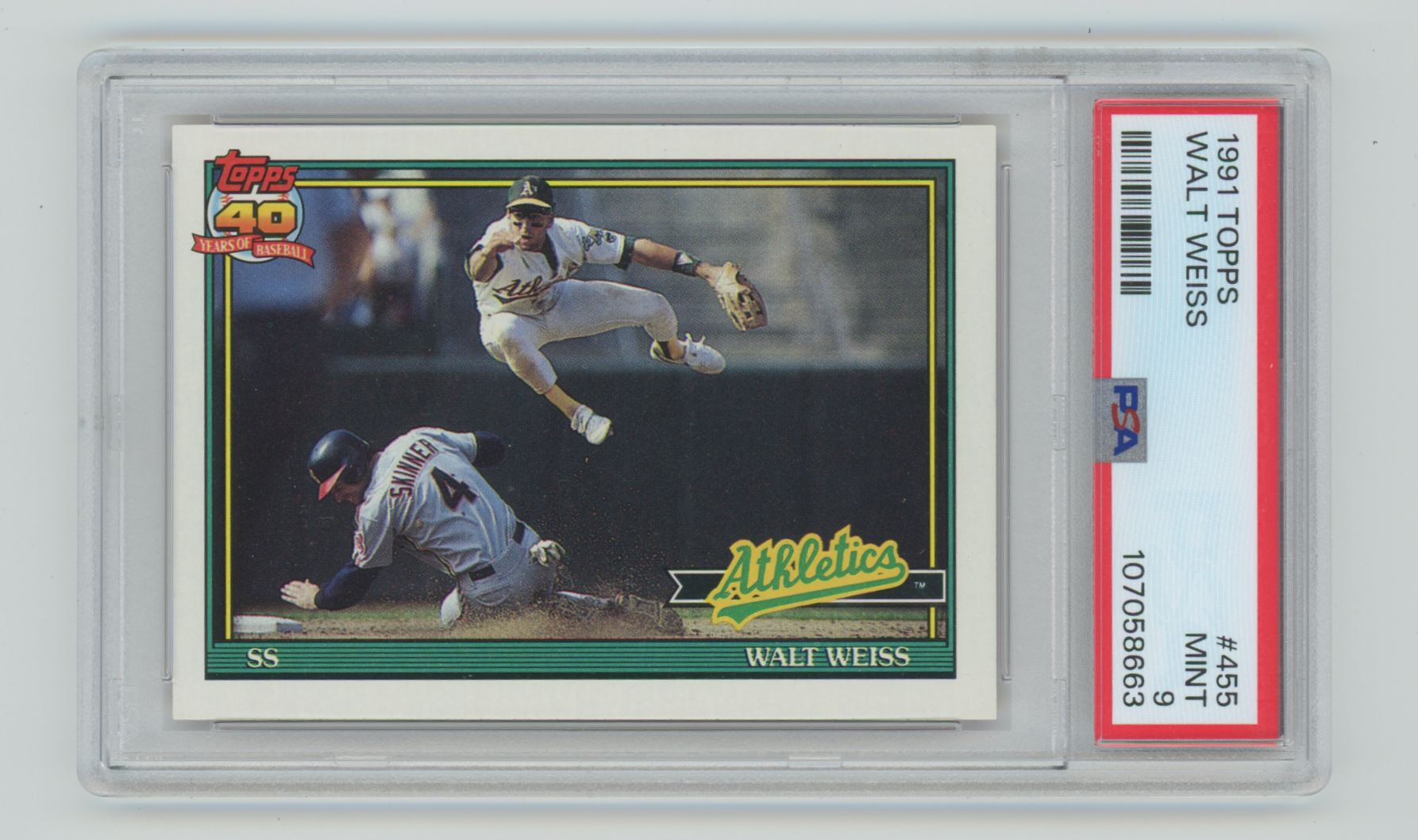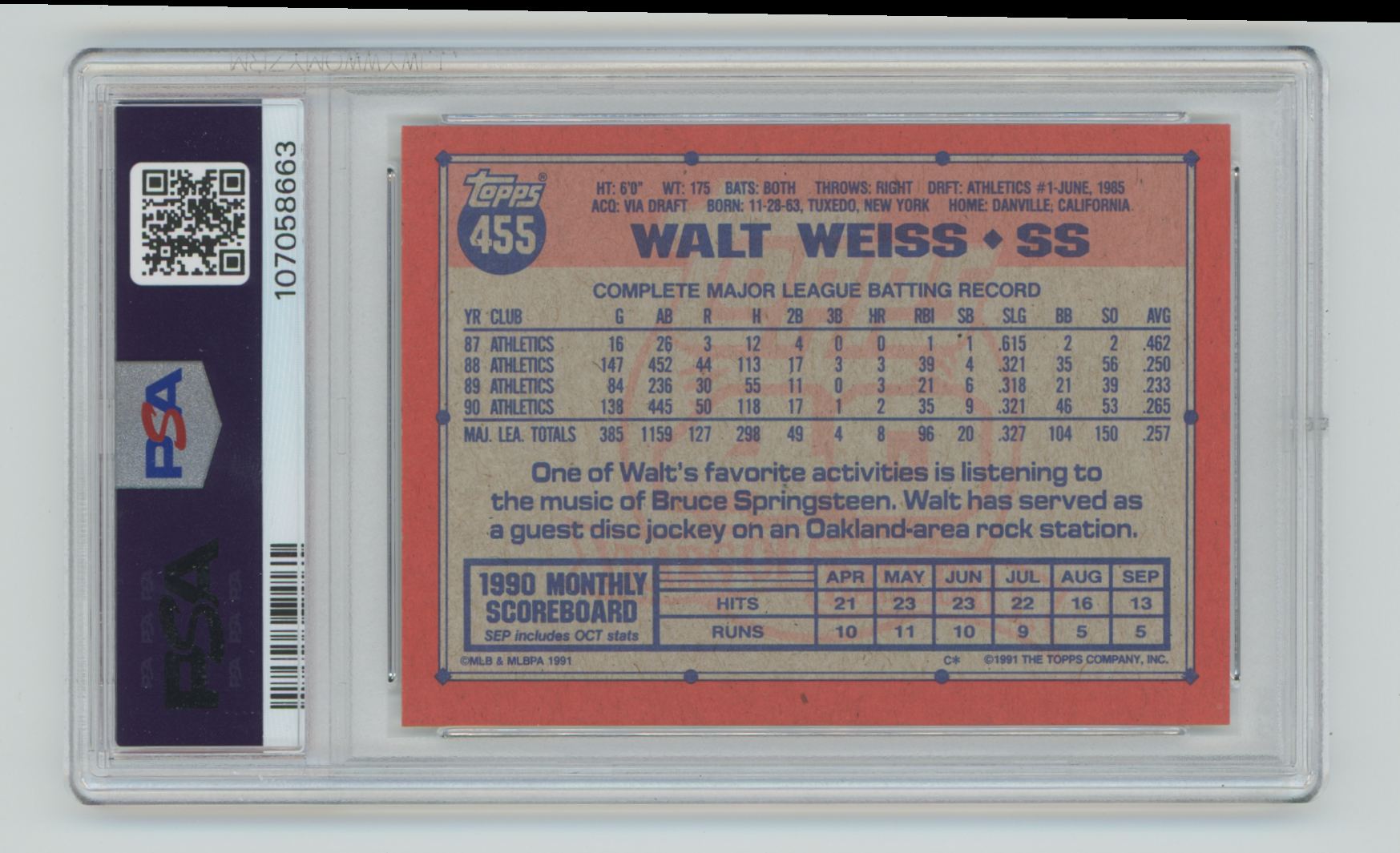 | 1991 TOPPS WALT WEISS PSA 9 OAKLAND ATHLETICS #455 POP 2 & NONE HIGHER |
