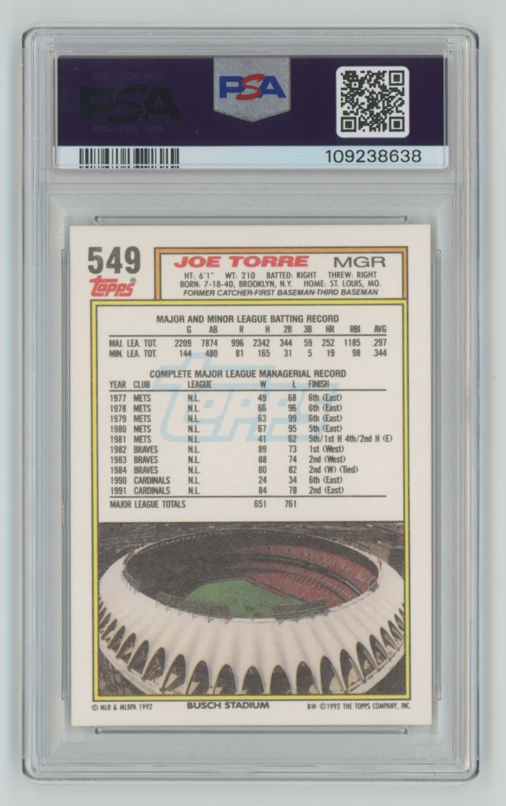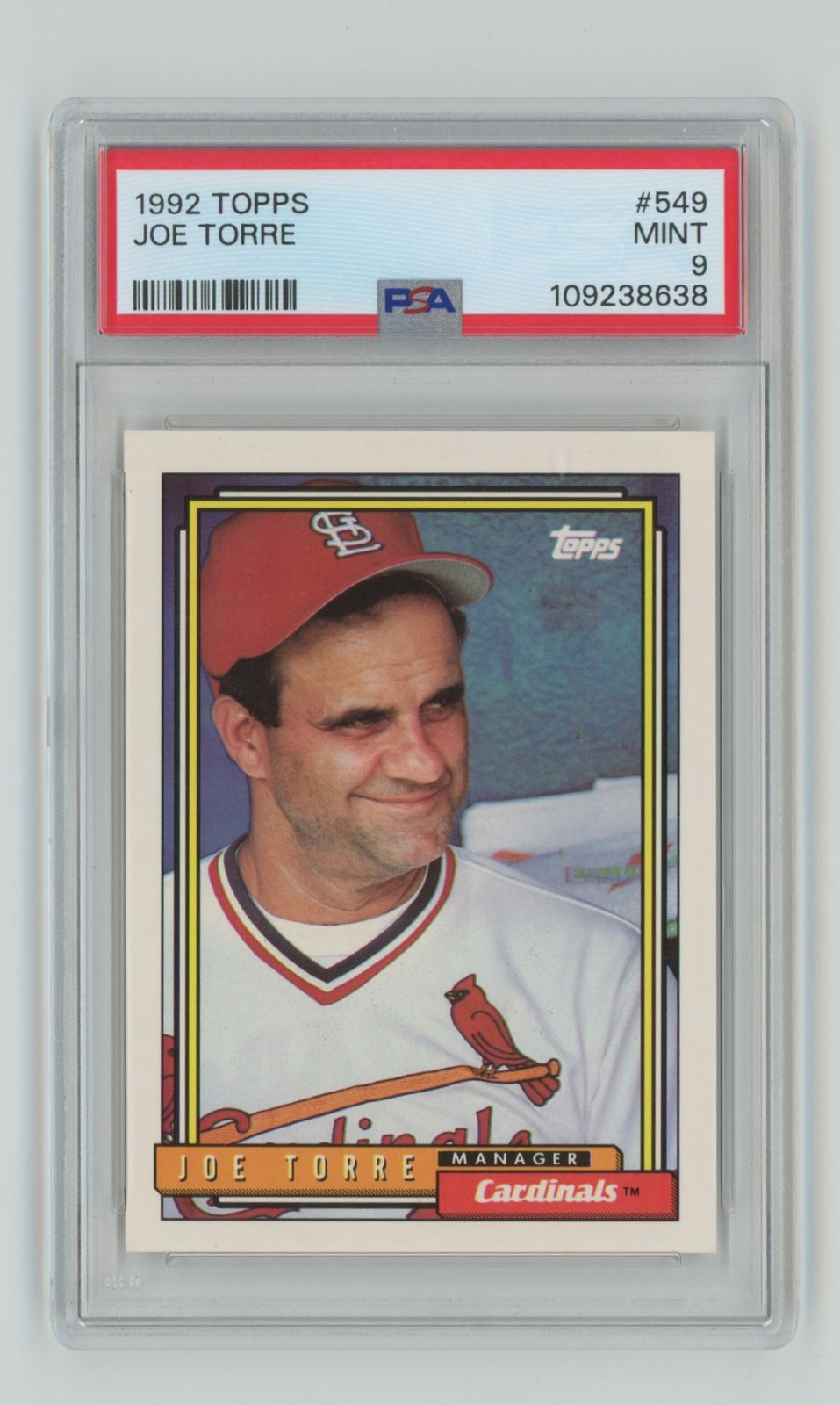 | 1992 TOPPS JOE TORRE PSA 9 ST. LOUIS CARDINALS #549 POP 10, TOTAL POP 45 |